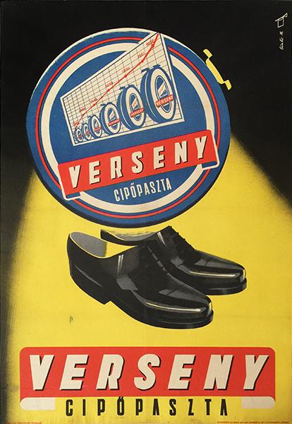 Add to basketSize: A1 1 Sheet (cca. 55 x 84 cm). Original vintage commercial poster from the beginning of the 1950s It was designed by M aacute ty aacute s Sinka M aacute ty aacute s Sinka is a fine Hungarian poster artist who started his career in the 1950s During his artistic activity until the end of the 1970s he designed numerous prominent posters and album covers He created many humorous designs for campaigns for prevention from accidents promoting healthcare traffic rules and anti alcoholism and he designed skillful commercial posters as well This work is a good example for the latter type The advertisement was created for the Race Shoe Polish The poster is a simple elegant piece The composition shows the logo and the trademark of the brand with a shiny pair of smart black male shoes in front of a black and yellow background The elements are carefully positioned in the middle of the poster and are highlighted by the dramatic visual effect of the strong contrast of the background colours In addition the yellow colour patch can seem as a spotlight behind the trademark so the highlight of the elements is even more enhanced This strong focus on the brand design recalls the tendency of the ldquo Sachplakat rdquo The so called ldquo object posters rdquo featured a realistic depiction of the advertised product with only a few or no other elements German poster art was revolutionized by Lucien Bernhardt who is considered to be the father of Sachplakat style His works in 1905 were striking with their stark simplicity and clean bold typography among the common stilted Art Nouveau pieces of the period In Hungary M aacute rton Tuszkay was the first one to introduce the new approach in advertising in the 1910s Even though Sinka didn rsquo t present the shoe polish product itself in its original packaging on this poster his work can be considered as an object poster Specific elements of the product rsquo s original packaging design are highly emphasized which make a concentrated composition The skillful use and the stressing of strong contrasting colours flat shapes spectacular angles and perspectives made object posters interesting as well as the effective typographic design This poster represents the excellence of the product by depicting the perfectly polished shoes in an impressive angle In the meantime the entire design has an ethereal flat like character with the floating trademark and logo of the brand However the spotlight effect of the background enhances the three dimensions These simultaneous but contradictory visual impressions create an exciting and complex visual world around the captured elements All in all this clean and tight composition was a modern piece in its time It shows the elegance and decorativeness of Sinka rsquo s commercial designs on which he could choose the proper tools to create the perfect atmosphere It is also a good indicator of how the object poster style remained up to date and varied even in the middle of the century in Hungary similarly to Switzerland Certainly the pieces could be effective advertisements as they imprinted the specific design of products and brands to the mind of viewers Fine, restored fold marks, small tears.