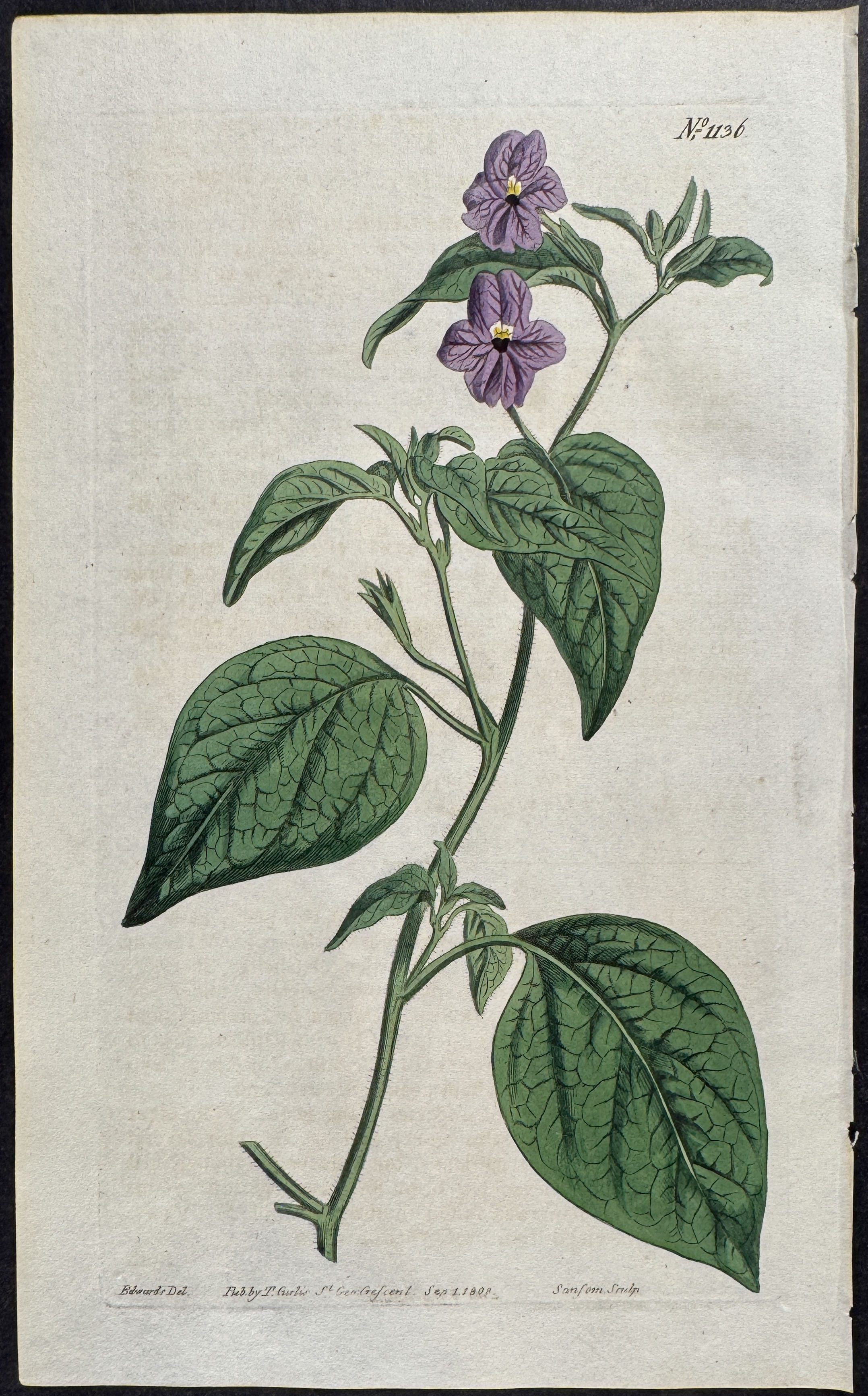 Add to basketThis originally hand-colored engraving is from William Curtisā s "The Botanical Magazine; or, Flower-Garden displayed: in which the most ornamental foreign plants, cultivated in the open ground, the green-house, and the stove, are accurately represented in their natural colours." The is engraving was published between 1803 and 1809 in London by S. Couchman. --- William Curtis (1746-1799) was a famous English botanist. He was determined to produce a scientifically accurate journal, and so took care that artists used live specimens for reference. Each plate features a meticulously drawn specimen with an accompanying descriptive text for each. The first 70 volumes (1787-mid1800s) were printed using copper etching and then finished with watercolor added by hand. --- Commonly referred to as Curtis' "Botanical Magazine", this prolific periodical was first published in 1787 and is still in publication today by the Kew Gardens. "It is, indeed, the oldest current scientific periodical of its kind with coloured illustrations in the world, and in the beauty of production and high standard of its contributions it can claim a unique place" (Henry II, p. 302) --- The work is in very good to excellent condition overall. There may be a few minor marks or imperfections to be expected with age. Please review the image carefully for condition and contact us with any questions. --- Paper Size ~ 5 1/2" by 9".