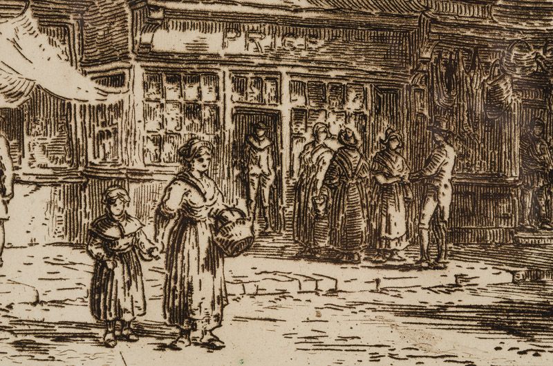 Add to basketOriginal Etching. Beautifully Framed. Size of frame with Etching: 41.5 cm x 52 cm. Size of actual etching: 26 cm x 37 cm. Original, vintage etching by Sir Ernest George. Signed in the plate, not in pencil ! Only very faint signs of some foxing. Beautifully mounted and framed. With descriptive Letterpress by Ernest George (included is a wonderful historic explanation regarding this old location in London by Ernest George). Sir Ernest George RA (13 Jun 1839 1922) was an English architect, landscape and architectural watercolour painter, and etcher. His London office was once called "The Eton of architects' offices". His pupils included Herbert Baker, Guy Dawber, John Bradshaw Gass, Edwin Lutyens and Ethel Charles. In the 1870s in partnership with Harold Peto, George designed houses in London for the Cadogan Estate in Chelsea and Kensington, and a number of country houses. In 1881 they designed Stoodleigh Court at Tiverton for Thomas Carew. In 1891 they designed an extension to West Dean House for William James, creating the Oak Room, now Oak Hall in West Dean College. Between 1870 and 1911 George designed several houses with his former pupil, Alfred B. Yeates. In New Zealand, which he never visited, he designed the Theomin family house Olveston in Dunedin which was built 1904-07. He was also responsible for the current Southwark Bridge (1921), and the Memorial to Heroic Self Sacrifice in London's Postman's Park. He served as president of the Royal Institute of British Architects from 1908 to 1910. In the late 19th century, George trained Ethel Charles, the first woman to be elected a member of the Royal Institute of British Architects. George's residence at 17 Bartholomew St, London Borough of Southwark is commemorated with a Southwark Council blue plaque. (Wikipedia) Sprache: english.