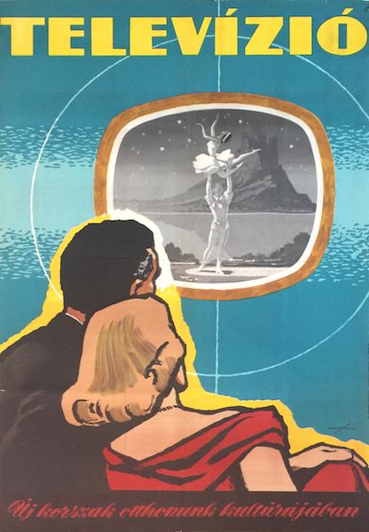 Add to basketSize: A1 1 Sheet (cca. 84 x 59 cm). Television New era in home culture is an original 1959 vintage Hungarian advertising poster designed by Jozsef Bottlik Commercial poster that aimed to introduce a new era in home life with the television The first television devices were produced in 1955 in Hungary The price was incredibly high around five thousand Hungarian forints while an average salary for an engineer was around five hundred forints Trading of the television begun in 1956 the Hungarian Television was first broadcasting in 1957 This poster was created in 1959 and it was a very modern composition The first part of the decade was characterised by the compulsory norms of Socialist Realism socialist content in a realist portrayal This was the key to the extensive propaganda which was the only tool of the political dictatory to brainwash the population The situation changed after 1956 and while Socialist Realism continued to exist it ceased to have an artificially created predominant position on the art scene A new form of political dictatorship incepted instead of forcibly taking over every aspect of an individual s life it rather attempted to attract them with consumer goods and thus avoiding them paying attention to political matters Housing interior decoration furnitures and household appliances became the keys of happiness Propaganda was not over it existed in a new form This poster is a perfect example of these changes The composition is created by the former art deco designer J zsef Bottlik which can be recognized in the portrayal of the two figures in the foreground The poster s every detail shows the impression of luxury especially the clothing of the couple and the picturesque ballet show on the screen Previously luxury was something decadent vicious and unhonoured thus forbidden to represent The pattern of the background and the font type of the main title reflect a modernist style which was also banned in the previous period as blamed to be formalist However besides these changes in representation the biggest change can be noticed in the main message of the poster New era in home culture Entertainment and comfort seemed to be the new characteristics of everyday life during the new dictatorship according to the propaganda The couple in the foreground is calmly watching television back to the viewer the political leadership claims not to disturb Fine, light fold marks and wear.