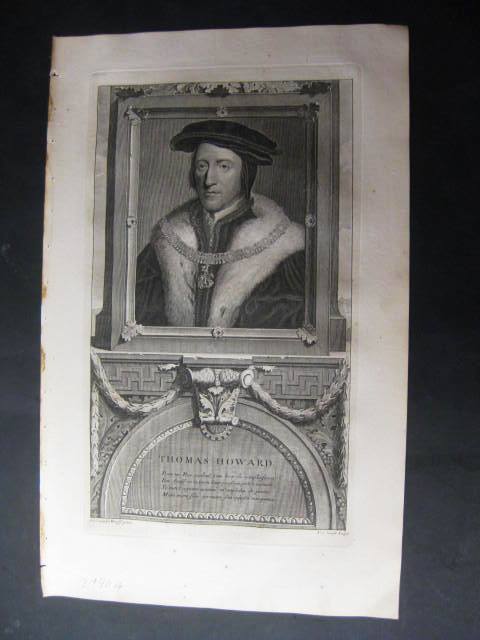 Add to basketKupferstich. Van der Werff. Original Kupferstich nach Adrian van der Werff, gestochen von P. Gunst. Adriaen van der Werff (* 21. Januar 1659 in Kralingen-Ambacht, Rotterdam; ? 12. November 1722 in Rotterdam) war ein niederländischer Maler. Aus; Histoire d'Angleterre d'Ecosse, et d'Irlande. .Thomas Howard, 3. Duke of Norfolk KG PC (* 1473; ? 25. August 1554 in Kenninghall, Norfolk) war ein englischer Staatsmann und Soldat unter den Königen Heinrich VII. und Heinrich VIII. Während der Regierungszeit des letzteren spielte er durchgehend eine wichtige politische Rolle, war Earl Marshal of England, diente als Berater im Kronrat und kommandierte Truppen, am bekanntesten in der Schlacht von Flodden Field ? noch als über 80-jähriger zog er für Königin Maria I. ins Feld. Nachdem zwei seiner Nichten, Anne Boleyn und Catherine Howard, als zweite und fünfte Ehefrau des Königs jeweils des Ehebruchs angeklagt und hingerichtet worden waren, erregten Howard und seine Familie jedoch zusehends das Misstrauen des Königs. 1547 wurden er und sein ältester Sohn, Henry Howard, Earl of Surrey, wegen Hochverrats verhaftet und zum Tode verurteilt. Sein Sohn wurde hingerichtet, Howard entging zwar der Hinrichtung, weil der König verstarb, verbrachte aber, nun bereits über 70-jährig, die nächsten sieben Jahre unter König Eduard VI. im Tower. Er wurde erst 1554 unter Maria I. wieder freigelassen und erhielt alle seine Würden zurück. ---- ORIGINAL COPPER INGRAVING 17th Century. deu 1. Stock F 2|2190AG Sprache: Deutsch Gewicht in Gramm: 444.