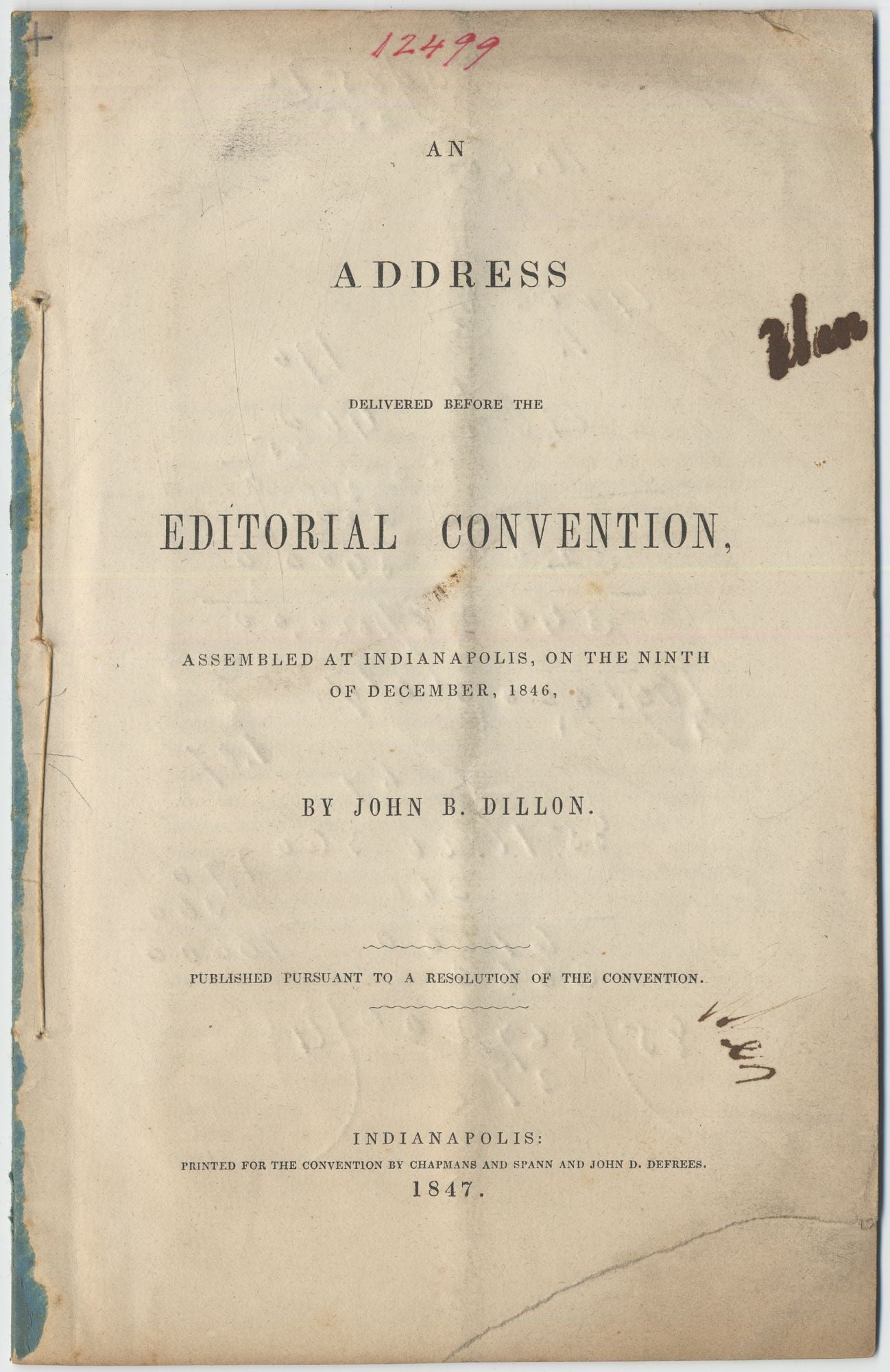 An Address delivered before the Editorial Convention, Assembled at Indianapolis, on the Ninth of December, 1846