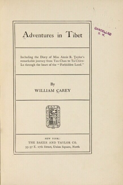 Adventures in Tibet. Including the diary of Miss Annie R. Taylor's remarkable journey from Tau-Chau to Ta-Chien-Lu through the heart of the "Forbidden Land"