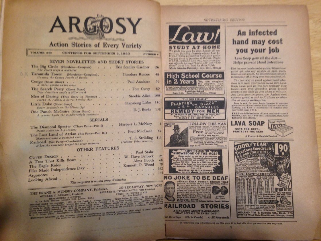 Argosy September 2, 1933 Volume 240 Number 6 The photos in this listing are of the item offered for sale.