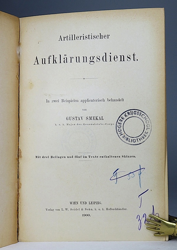 Artilleristischer Aufklärungsdienst. In zwei Beispielen applicatorisch behandelt. Mit drei Beilagen und fünf im Texte enthaltenen Skizzen.