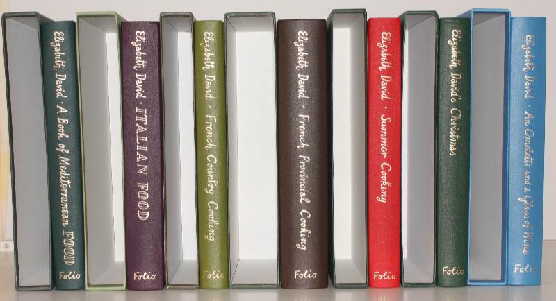 A Book of Mediterranean Food [with] Italian Food [with] French Country Cooking [with] French Provincial Cooking [with] Summer Coooking [with] Elizabeth David's Christmas [with] An Omelette and a Glass of Wine. Illustrated by John Minton, Sophie McCarthy, Juliet Renny, Adrian Daintrey, Marie Alix respectively. Introductions by Julian Barnes, Terence Conran, Artemis Cooper, Simon Hopkinson, Rose Prince, Lisa Chaney, Johnny Grey respectively. ELIZABETH DAVID IN FOLIO: COMPLETE SET OF FIRST IMPRESSIONS TO DATE