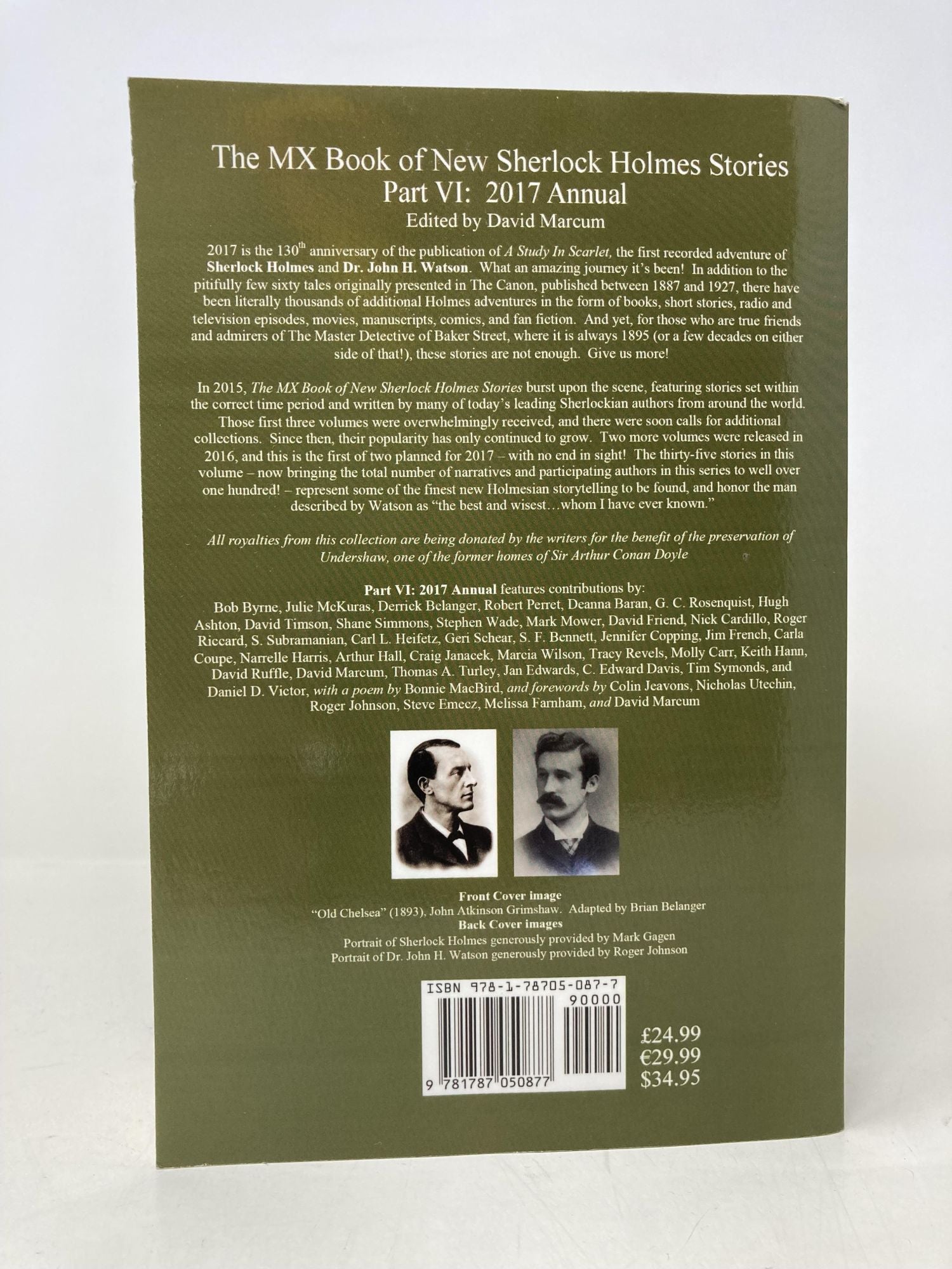 2017 is the 130th anniversary of the publication of A Study in Scarlet, the first recorded adventure of Sherlock Holmes and Dr. John H. Watson. What an amazing journey it's been! In addition to the pitifully few sixty tales originally presented in The Canon, published between 1887 and 1927, there have been literally thousands of additional Holmes adventures in the form of books, short stories, radio and television episodes, movies, manuscripts, comics, and fan fiction. And yet, for those who are true friends and admirers of the Master Detective of Baker Street, where it is always 1895 (or a few decades on either side of that!) these stories are not enough. Give us more! In 2015, The MX Book of New Sherlock Holmes Stories burst upon the scene, featuring stories set within the correct time period, and written by many of today's leading Sherlockian authors from around the world. Those first three volumes were overwhelmingly received, and there were soon calls for additional collections. Since then, the popularity has only continued to grow. Two more volumes were released in 2016, and this the first of two planned for 2017 - with no end in sight! The thirty-five stories in this volume - now bringing the total number of narratives and participating authors in this series to well over one-hundred! - represent some of the finest new Holmesian storytelling to be found, and honor the man described by Watson as "the best and wisest . . . whom I have ever known." All royalties from this collection are being donated by the writers for the benefit of the preservation of Undershaw, one of the former homes of Sir Arthur Conan Doyle. Part VI: 2017 Annual features contributions by: Bob Byrne, Julie McKuras, Derrick Belanger, Robert Perret, Deanna Baran, G.C. Rosenquist, Hugh Ashton, David Timson, Shane Simmons, Stephen Wade, Mark Mower, David Friend, Nick Cardillo, Roger Riccard, S. Subramanian, Carl L. Heifetz, Geri Schear, S.F. Bennett, Jennifer Copping, Jim French, Carla Coupe, Narrelle Harris, Arthur Hall, Craig Janacek, Marcia Wilson, Tracy Revels, Molly Carr, Keith Hann, David Ruffle, David Marcum, Thomas A. Turley, Jan Edwards, C. Edward Davis, Tim Symonds, and Daniel D. Victor, with a poem by Bonnie MacBird, and forewords by David Marcum, Nicholas Utechin, Roger Johnson, Steve Emecz, and Melissa Farnham.