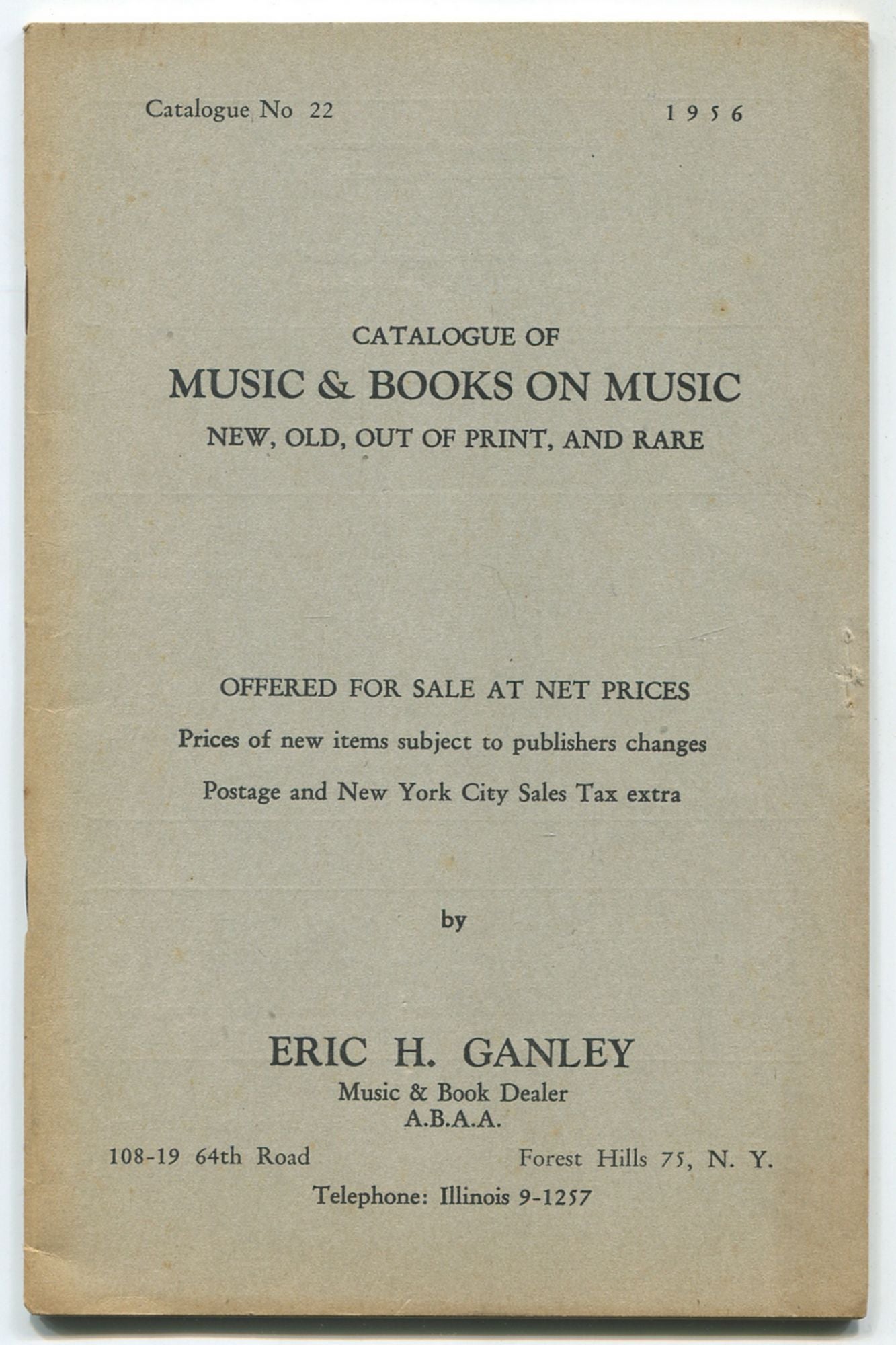 Published by Eric H. Ganley, Music & Book Dealer, Forest Hills, New York, 1956