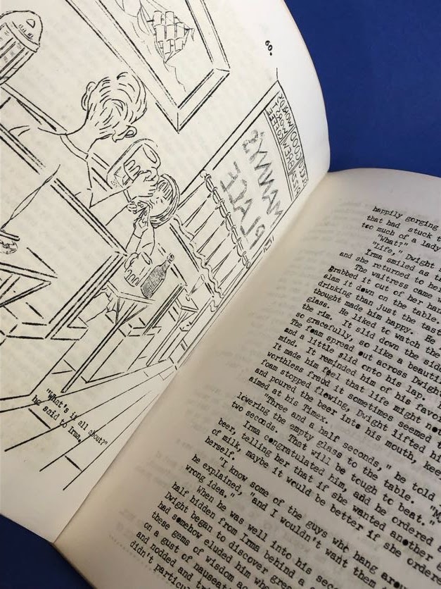 Add to basket8.5 x 6.75 in. Squarish 8vo. [2] 110 pp [3]. Stapled yellow paper wraps. Front wrapper illustrated with photocopied line drawings, title hand-colored in red ink. Single, large folded signature, with center leaves just holding at staple due to thickness of text, and protruding from wrappers at fore edge. Some soiling to wrappers and lower edge of text, outer corners, and spine. Creasing to lower fore corner of rear wrapper and last few leaves. Early, self-published mimeo manuscript, distributed by the author for the price of $2.00, stating in the foreword: "Several major publishers wanted to issue twenty-five dollar, gold embossed, buckram bound editions.but I said no, I wanted to do it this way." Later re-issued posthumously, this scarce printing contains the author's "mis-spellings.typographical errors.[and] huge ugly splotches of ink.This book is largely a mess.".