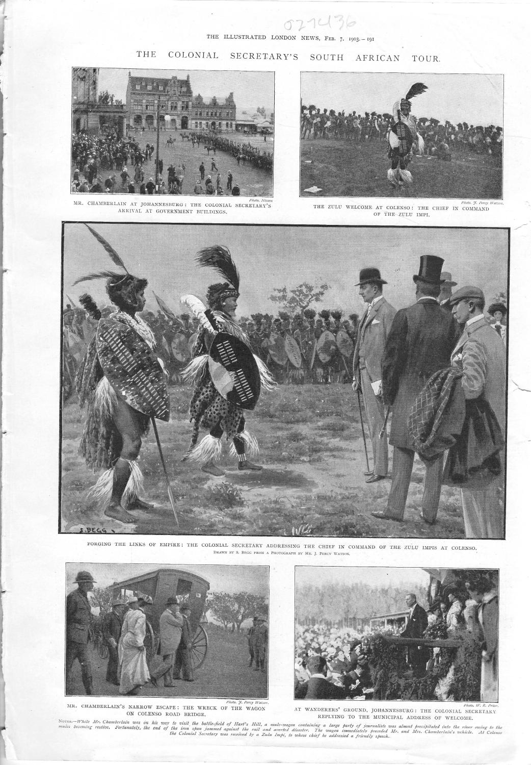 ENGRAVING:'The Colonial Secretary's South African Tour'.from The Illustrated News of the World, February 7, 1903