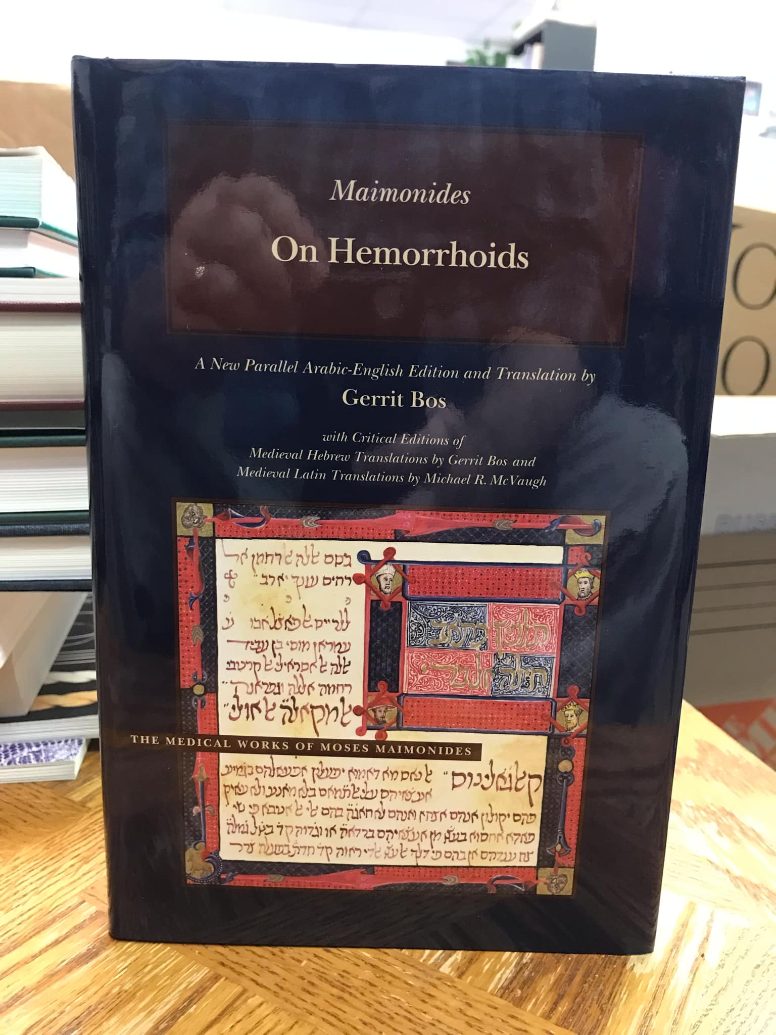 Moshe ben Maimon, better known as Moses Maimonides, is among the most celebrated rabbis in the history of Judaism, and the author of works in Arabic on many subjects, including influential philosophical and medical treatises. On Hemorrhoids is one of these texts, written for a young man of a noble family who was seeking a regimen to help him treat his hemorrhoids. While not the first to write on this subject, Maimonides’s work bears his personal stamp with his emphasis on dietetics, which plays a primary role in so many of his other medical writings. He warns against hastily treating the painful condition with drastic measures such as bleeding and surgery, instead encouraging more cautious treatments like a change in diet. He also advises his patient that if more extreme actions need to be taken, then Maimonides himself must be present.