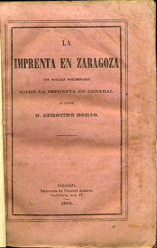 Published by Imprenta y Libreria de Vincente Andres, Zaragoza, 1860