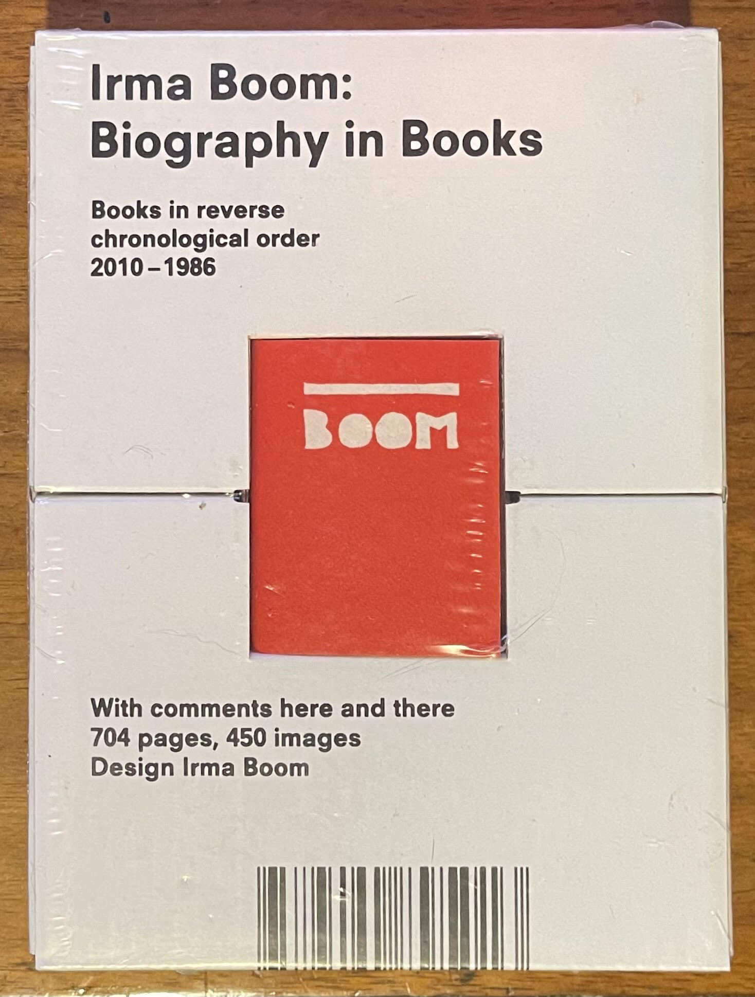 Irma Boom has become one of the most widely renowned and laureated book designers in the world today. Her often ingenious solutions to individual book productions have gained her international fame and her work is now collected by many leading museums such as the MoMa in New York. Besides book designs she also creates corporate identities, postage stamps and posters. The Special Collections of the University of Amsterdam Library will honour Irma Boom with a major retrospective exhibition of her work. Her studio archive was donated to the Library in 2003. To accompany this exhibition she produced an exceptional catalogue; this miniature book (38 X 50 mm) contains a complete overview of her work, with commentary and more than 450 full colour illustrations in 704 pages with printed edges.