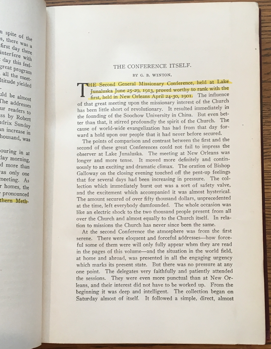 The Junaluska Conference: A Report of the Second General Missionary Conference of the Methodist Episcopal Church, South. Held at Lake Junaluska, N.C., June 25-29, 1913