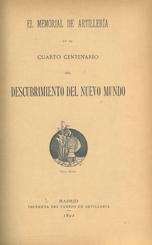 EL MEMORIAL DE LA ARTILLERÍA EN EL CUARTO CENTENARIO DEL DESCUBRIMIENTO DEL NUEVO MUNDO.