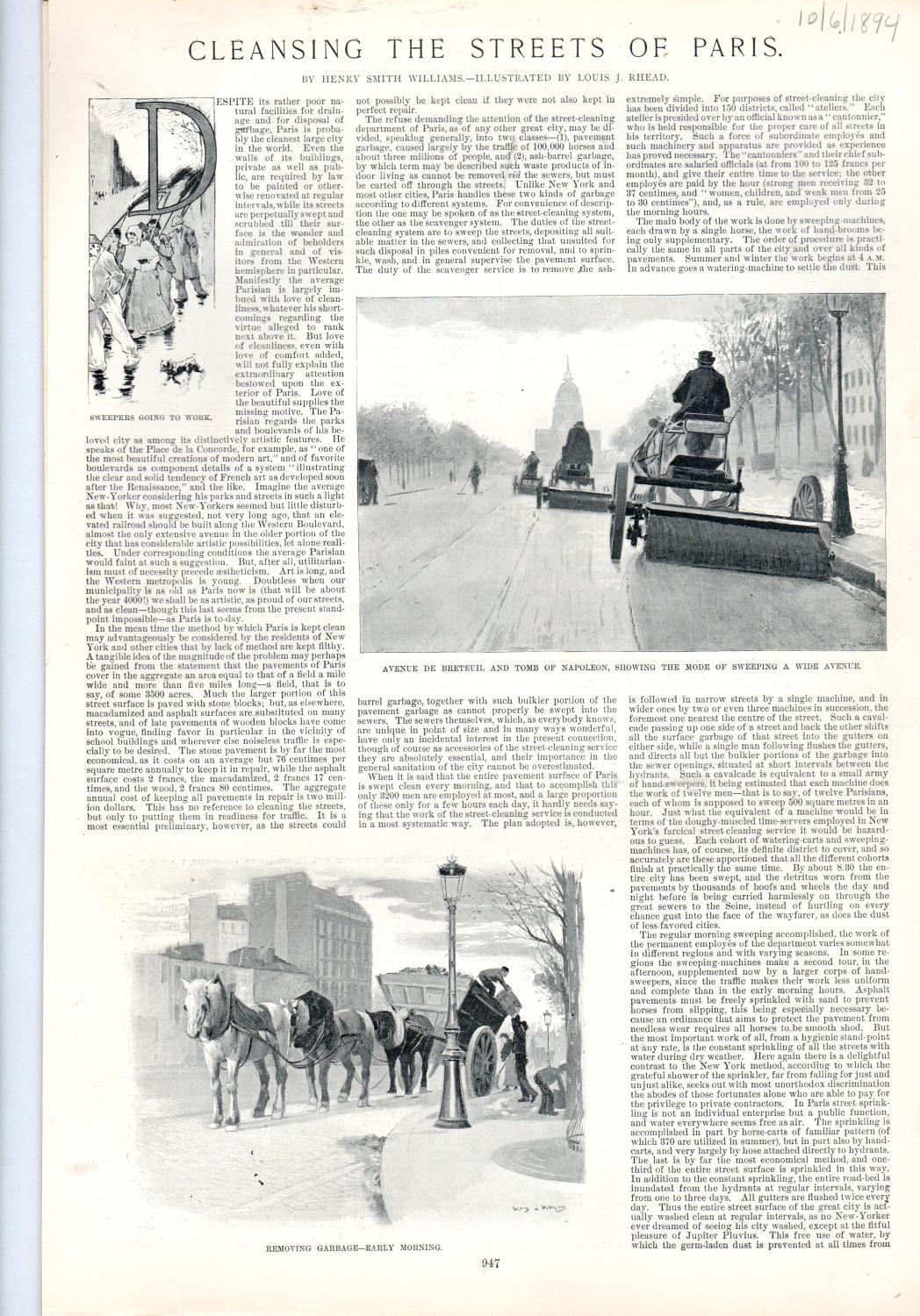 PRINT:'Cleansing the Streets of Paris'.story & engraving from Harper's Weekly, October 6, 1894