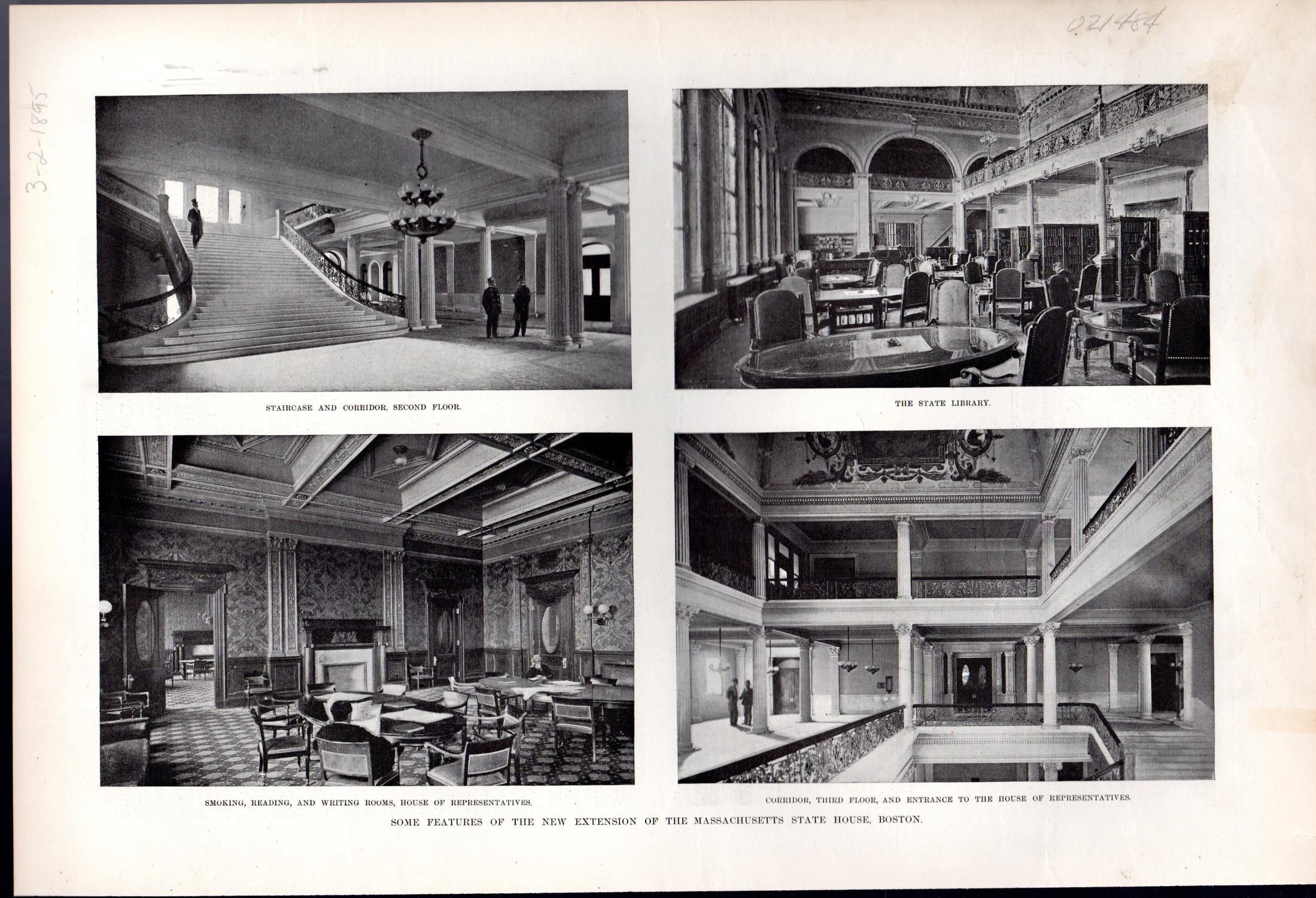 PRINT: 'Some Features of the New Extension of the Massacuusetts State House'.photos from Harper's Weekly, March 2, 1895