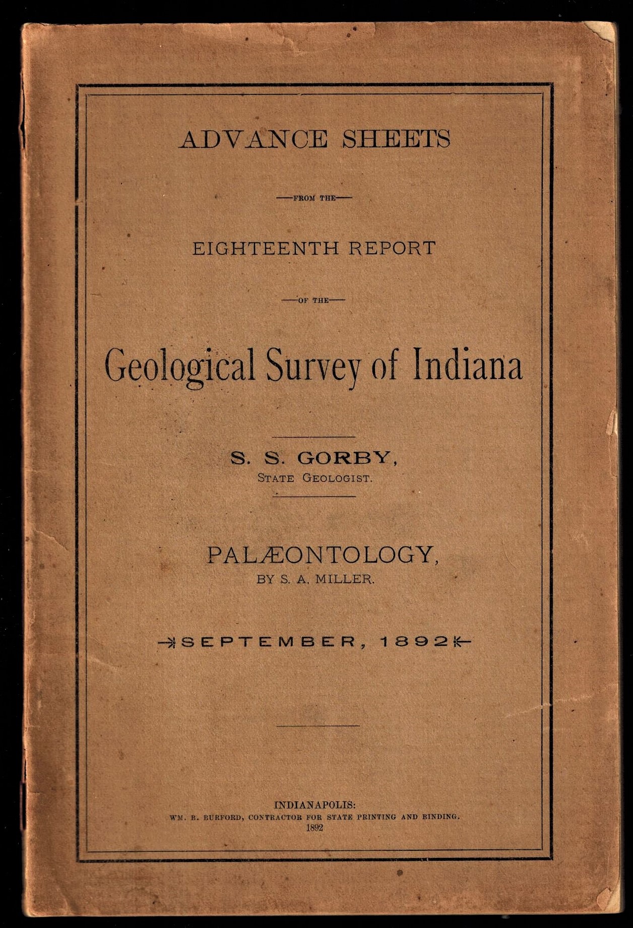 Palaeontology; in Advance Sheets from the Eighteenth Report of the Geological Survey of Indiana; S.S. Gorby, State Geologist.