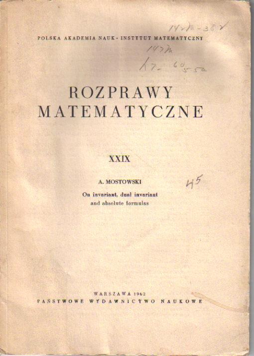 ROZPRAWY MATEMATYCZNE - XXIX:nt, Dual Invariant and Absolute Formular