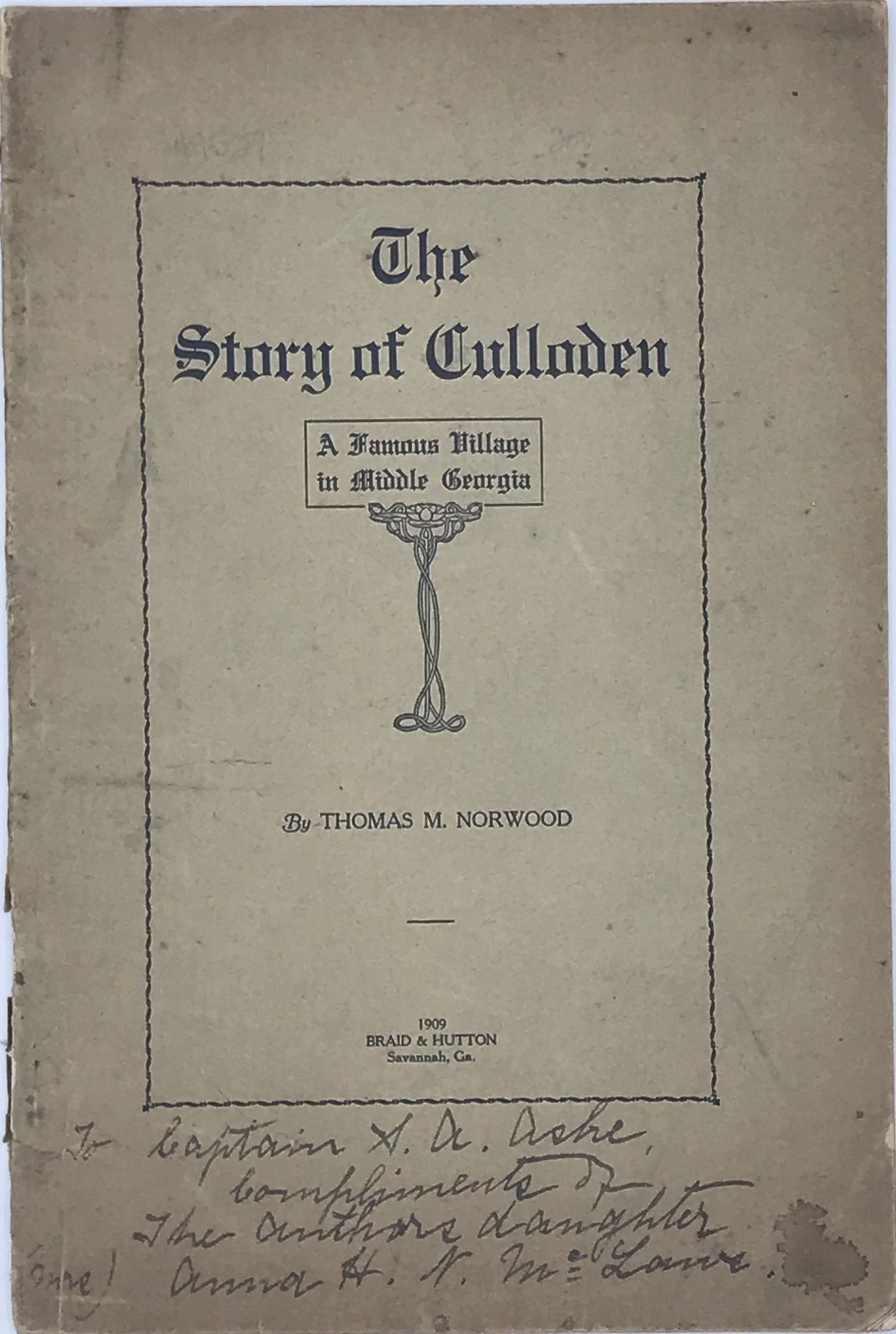 THE STORY OF CULLODEN, A FAMOUS VILLAGE IN MIDDLE GEORGIA [cover and caption title]
