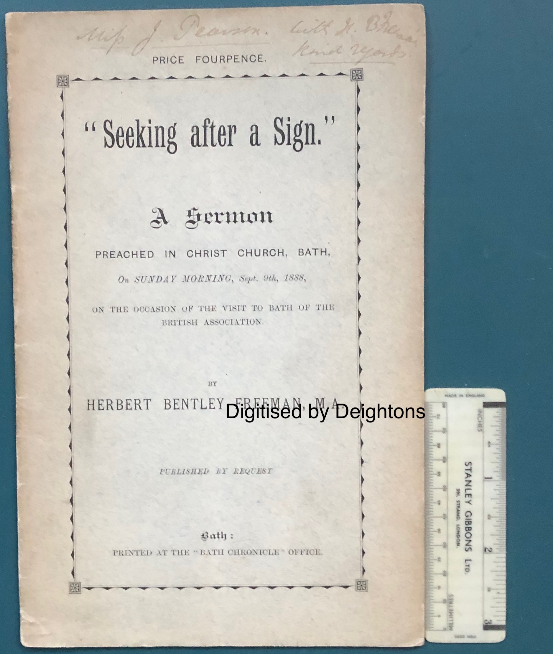 Seeking After A Sign A Sermon Preached In Christ Church Bath On Sunday morning Sept 9th 1888 On The Occasion Of the Visit To Bath Of the British Association DEDICATED BY THE AUTHOR