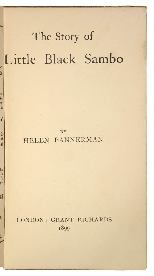 First edition; 12mo; 27 full-page colour illustrations after the author printed by Edmund Evans, pages 4-5 with old repair to gutter, new endpapers; publisher's pale green cloth lettered and blocked in darker green, slight lean and bumping, very minor marking, overall a very attractive copy, presented in modern cloth-backed solander box. Helen Bannerman originally wrote this story during a long railway journey in India, to send to her two small daughters that she had just left to be educated in her native Scotland. It was eventually published as the fourth title in the 'Dumpy Books' series. Despite controversy it has gone through countless printings and translations, as well as many sequels, imitations, and parodies. Seller Inventory # 96849