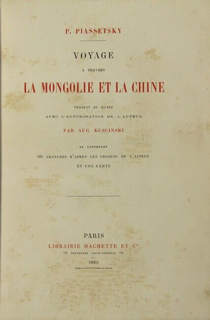 Voyage à travers la Mongolie et la Chine traduit du russe . par A. Kuscinski et contenant 90 gravures d'après les croques de l'auteur et une carte