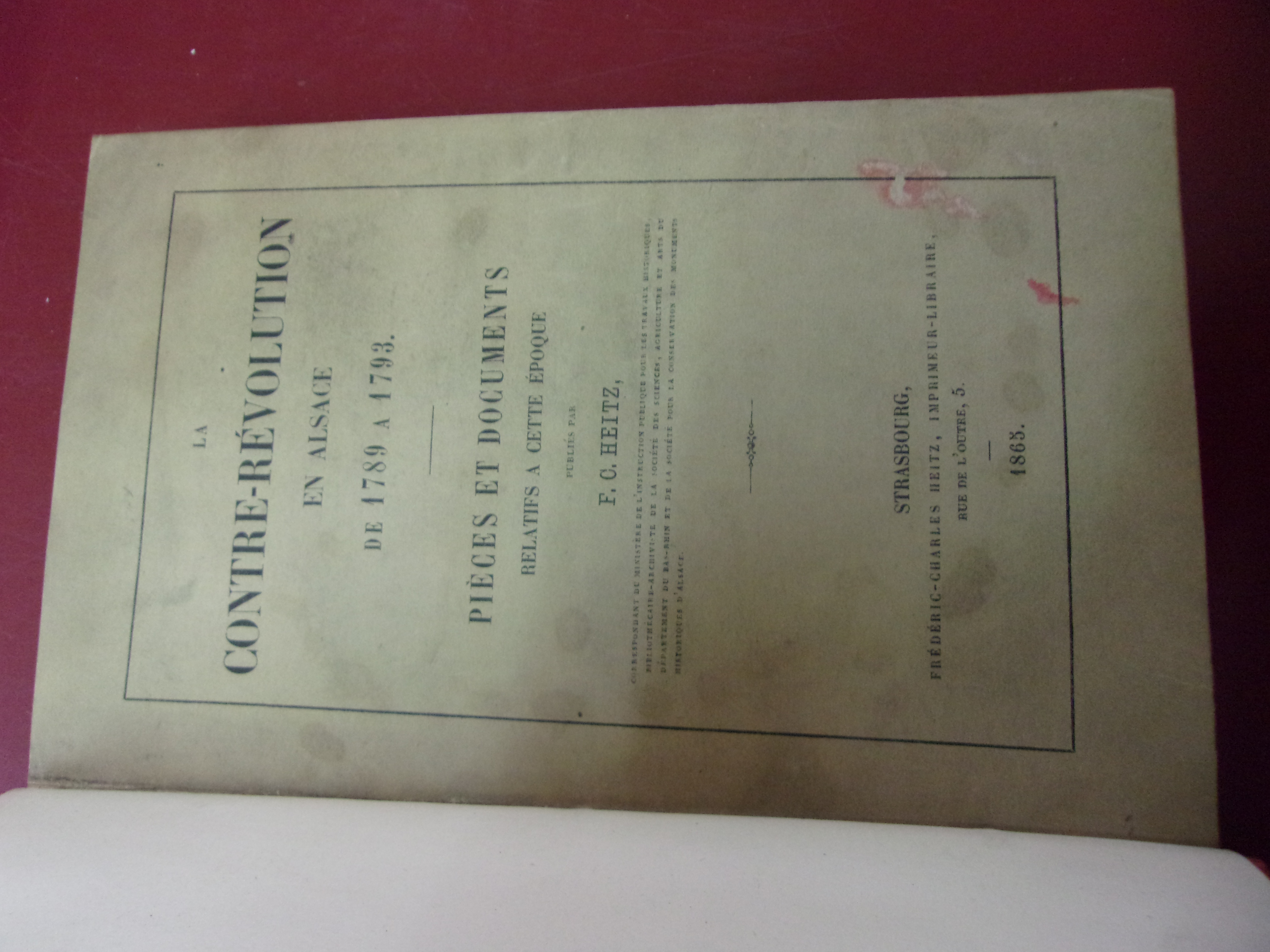 La contre-Révolution en Alsace de 1789 à 1793 - Pièces et documents relatifs à cette époque.