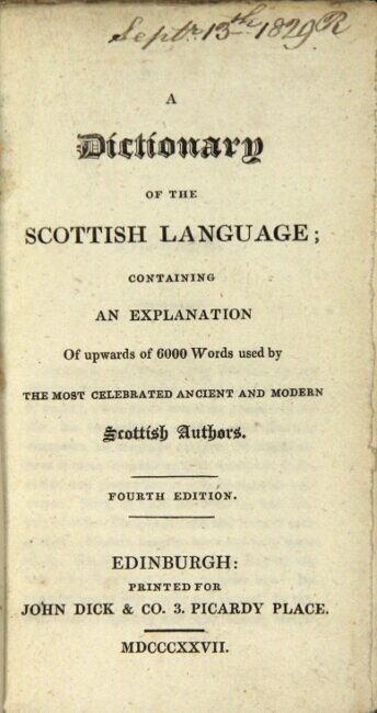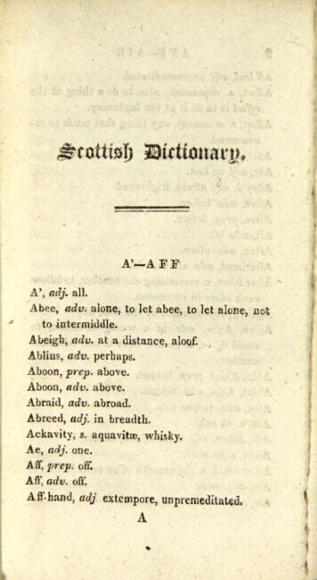 A dictionary of the Scottish language; containing an explanation of upwards of 6000 words used by the most celebrated ancient and modern Scottish authors