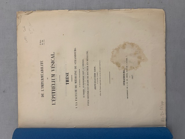 De l'Imperméabilité de l'Épithélium Vésical. Thèse présentée à la Faculté de Médecine de Strasbourg et soutenue publiquement le mardi, 19 novembre, à 3 heures