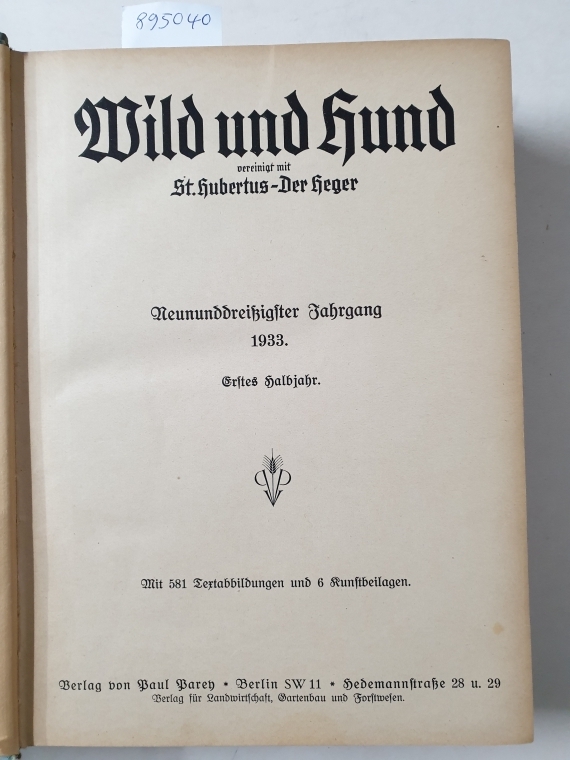 Wild und Hund : 39. Jahrgang : 1933 : Nr. 1 - 53 : in einem Band :