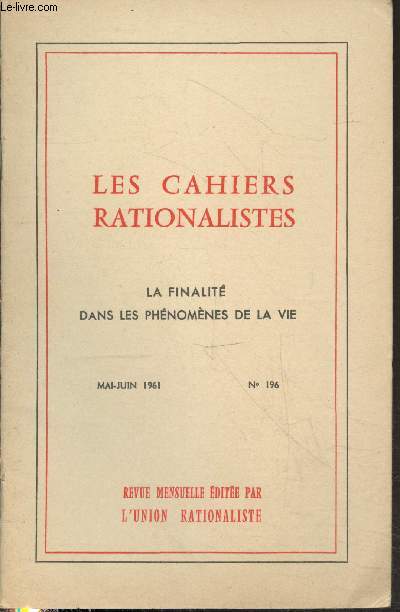 Les cahiers rationalistes n°196 Mai-Juin 1961 : La finalité dans les phénomènes de la vie