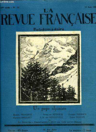 La revue française n° 32 - Le dictateur Lloyd George par Jacques Bardoux, Heranouche par Philippe de Zara, Un pape alpiniste par Marcel Provence, Scènes et récits de la russie bolcheviste par Serge Ivanoff, Les Marie de France, Le redressement polonais