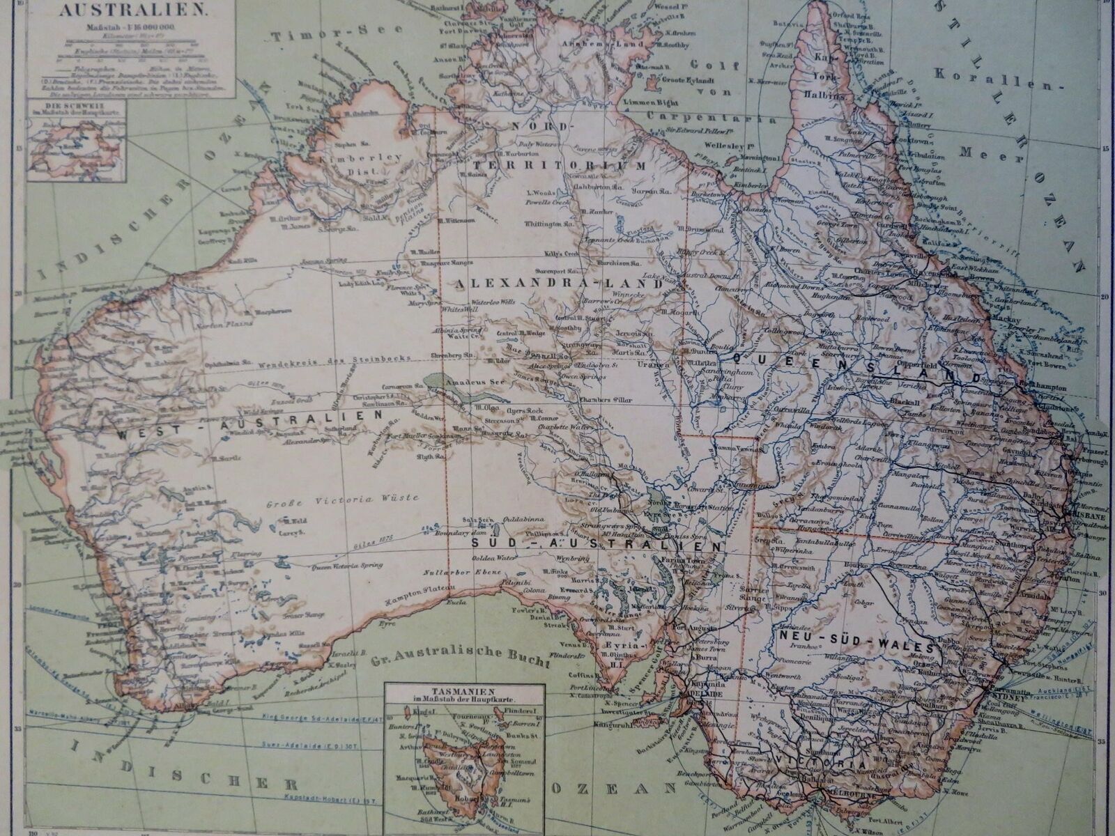 Australia Victoria Queensland New South Wales Tasmania Sydney 1892 detailed map