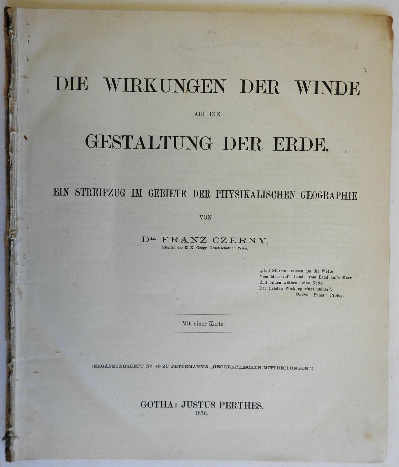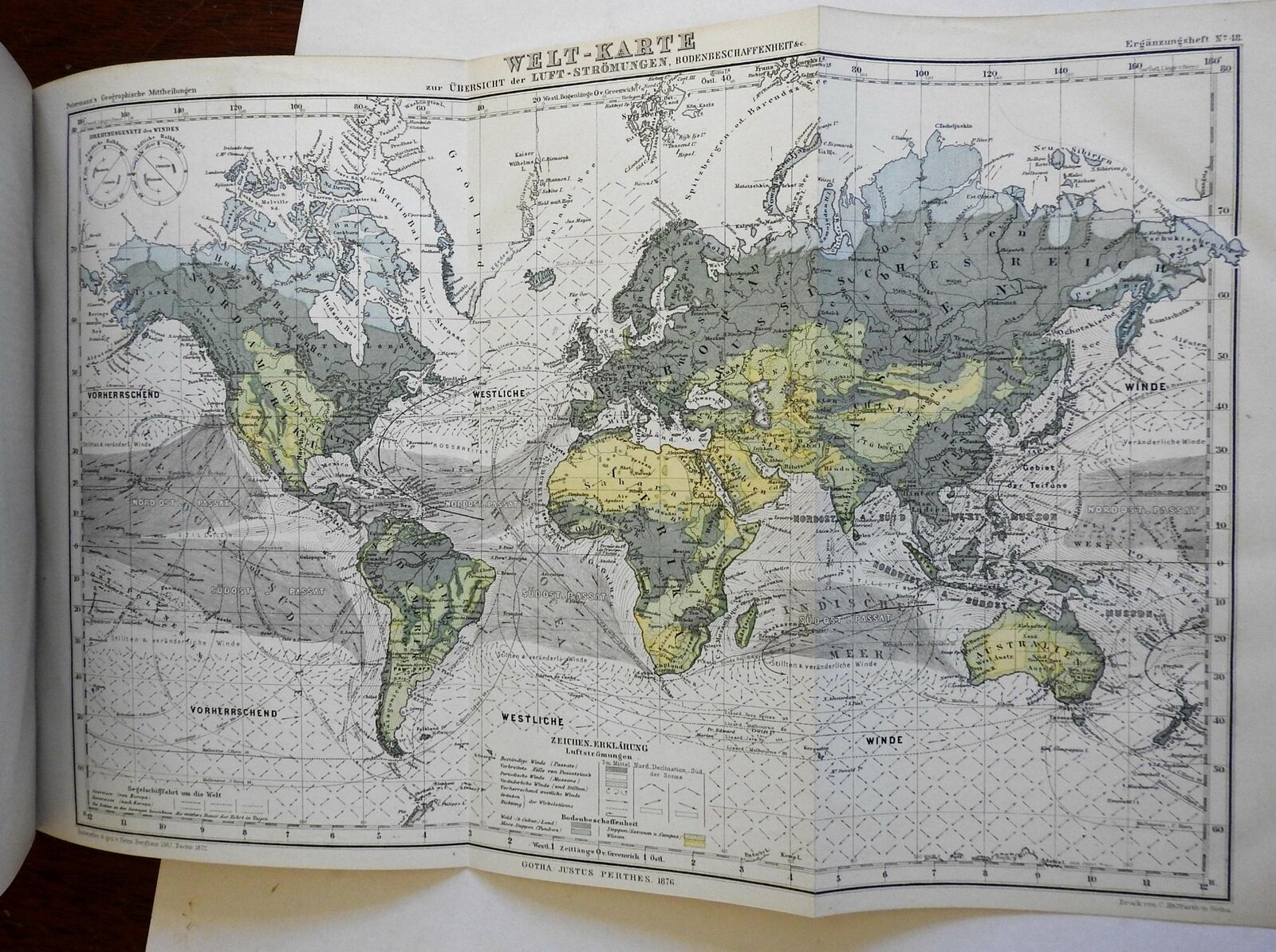 Effects of the Wind on the Earth 1876 Czerny Petermann scarce color map