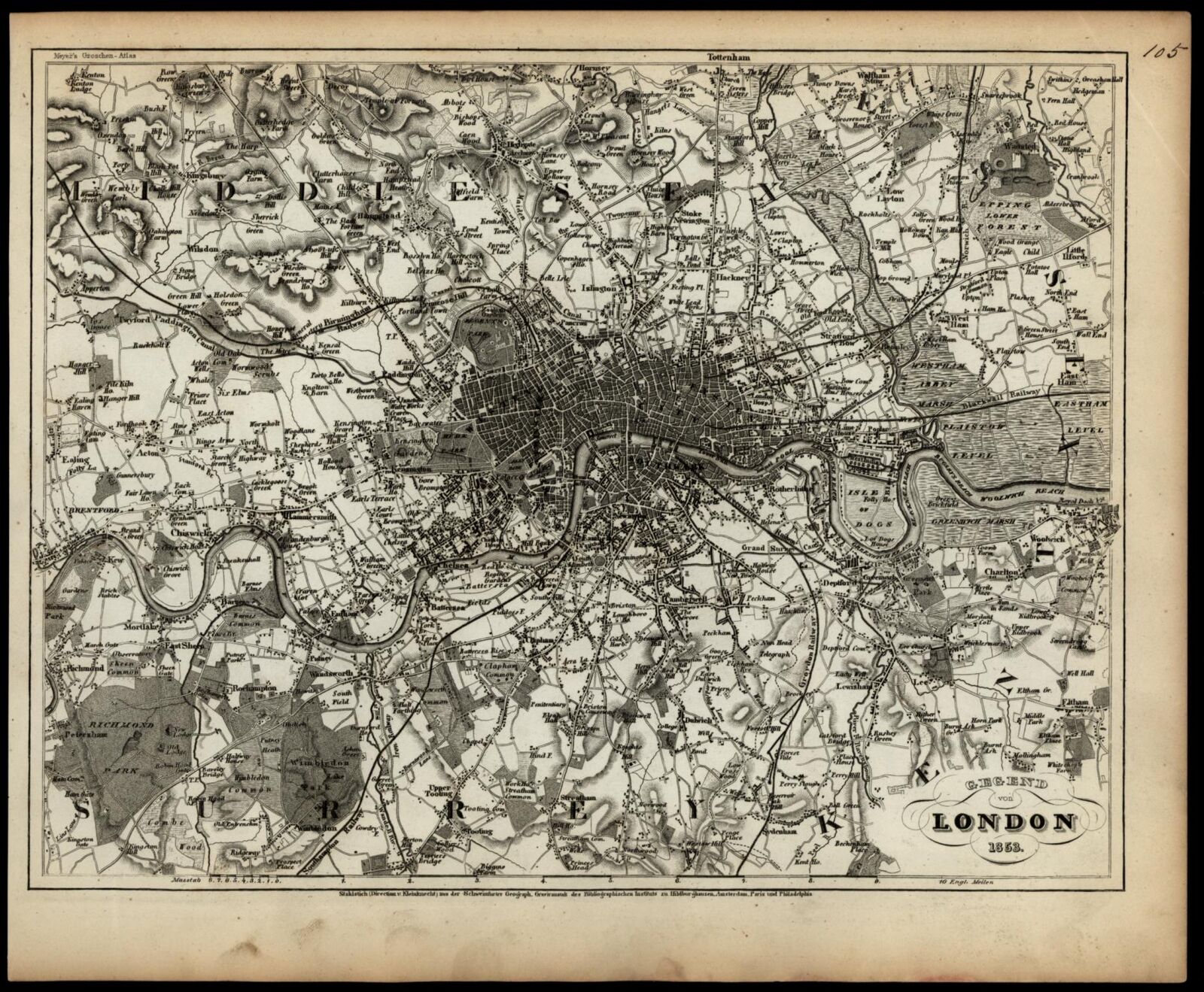 London city plan United Kingdom Great Britain 1853 Meyer detailed map