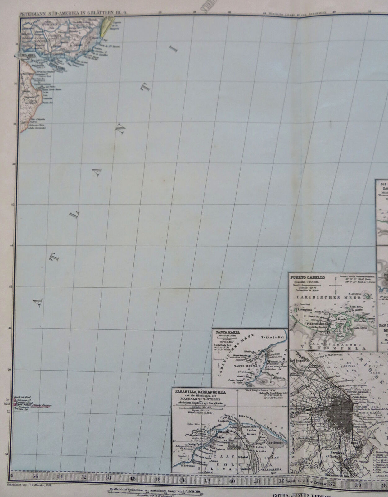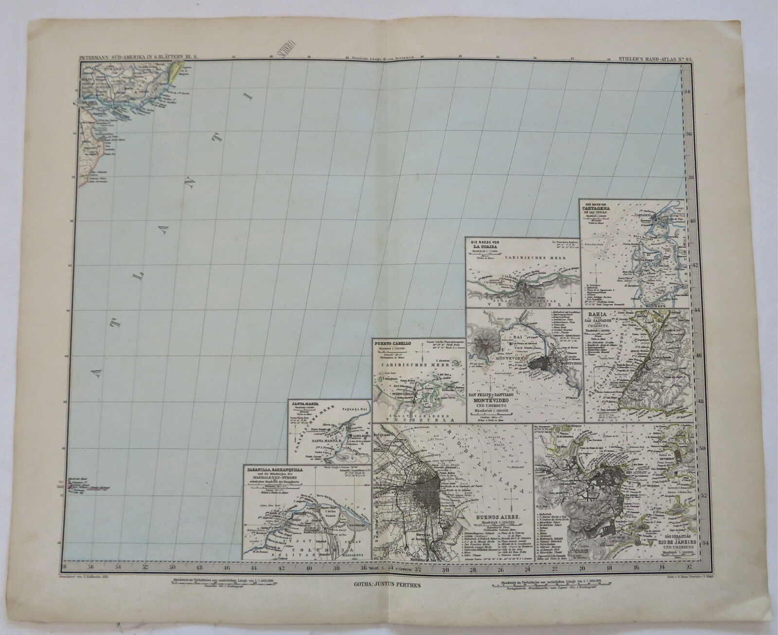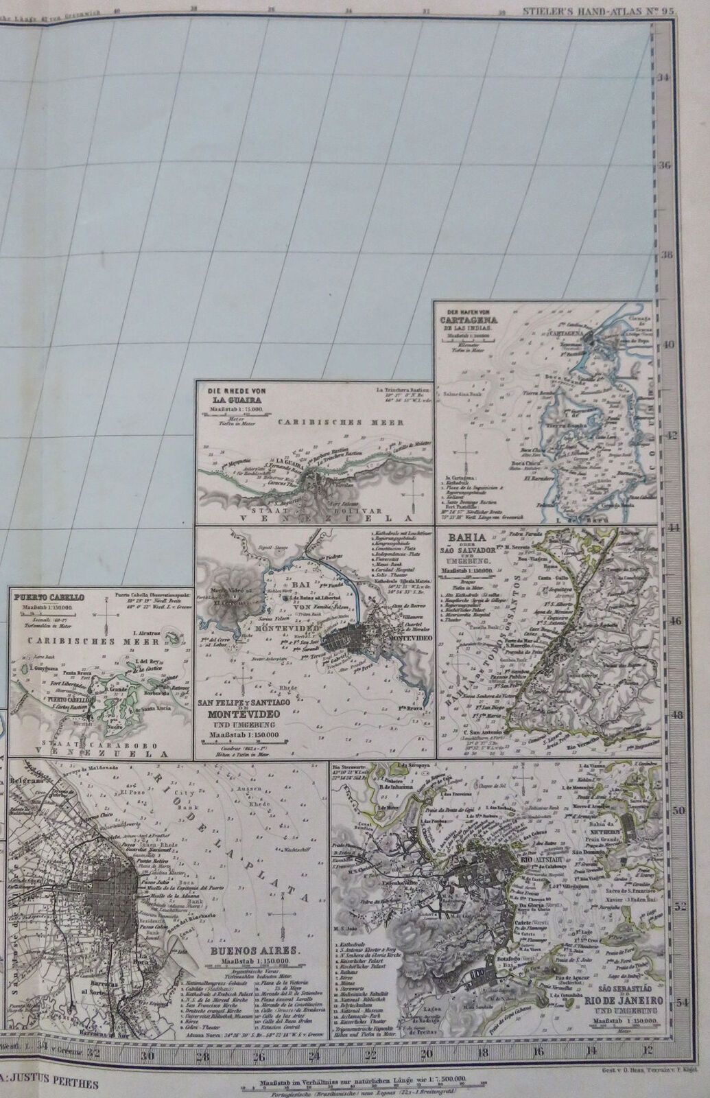 South American Capitals Montevideo Buenos Aires 1881 Petermann detailed map