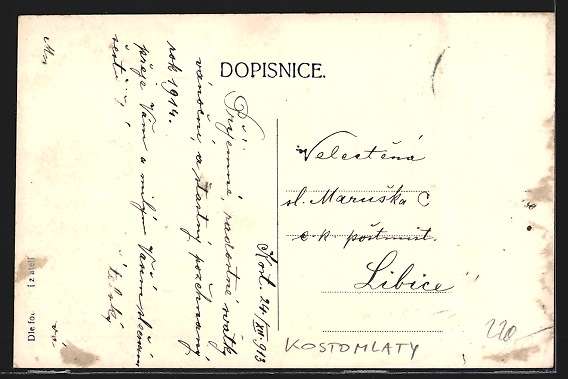 Add to basket***Ansichtskarte Kostomlaty, Restaurace u nadrazy*** gelaufen 1913, Briefmarke entfernt, rückseitig Oberflächenschaden, guter Zustand | Preis: 20.00 EUR | Keine MwSt.-Ausweisung, differenzbesteuert gem.§25a UStG | Versandkosten: Kostenloser Versand | Ausland > Europa > Tschechien > Stredoceský kraj / Mittelböhmische Region (Prager Umland) > weitere Städte und Gemeinden Stredoceský kraj / Mittelböhmische Region (Prager Umland).