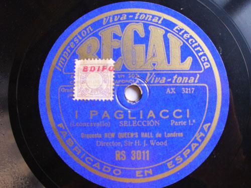 Antiguo Disco Pizarra - Old Slate Disc : ORQUESTA NEW QUEEN'S HALL de Londres: I Pagiacci 1ª y 2ª parte