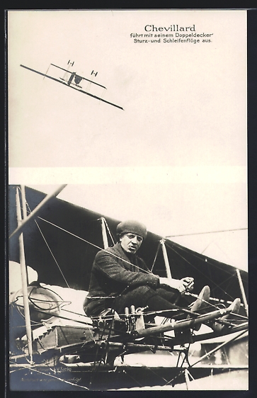 Foto-Ansichtskarte Sanke Nr. 37: Chevillard mit seinem Doppeldecker-Flugzeug