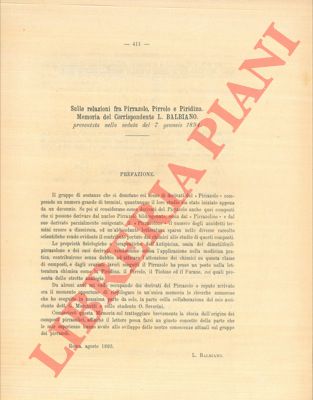 Add to basketRoma, Lincei, 1895, estratto cop. muta, pp. 411/545. - !! ATTENZIONE !!: Con il termine estratto (o stralcio) intendiamo riferirci ad un fascicolo contenente un articolo, completo in se, sia che esso sia stato stampato a parte utilizzando la stessa composizione sia che provenga direttamente da una rivista. Le pagine sono indicate come "da/a", ad esempio: 229/231 significa che il testo è composto da tre pagine. Quando la rivista di provenienza non viene indicata é perché ci è sconosciuta. - !! ATTENTION !!: : NOT A BOOK : ?extract? or ?excerpt? means simply a few pages, original nonetheless, printed in a magazine. Pages are indicated as in "from? ?to", for example: 229/231 means the text comprises three pages (229, 230 and 231). If the magazine that contained the pages is not mentioned, it is because it is unknown to us.