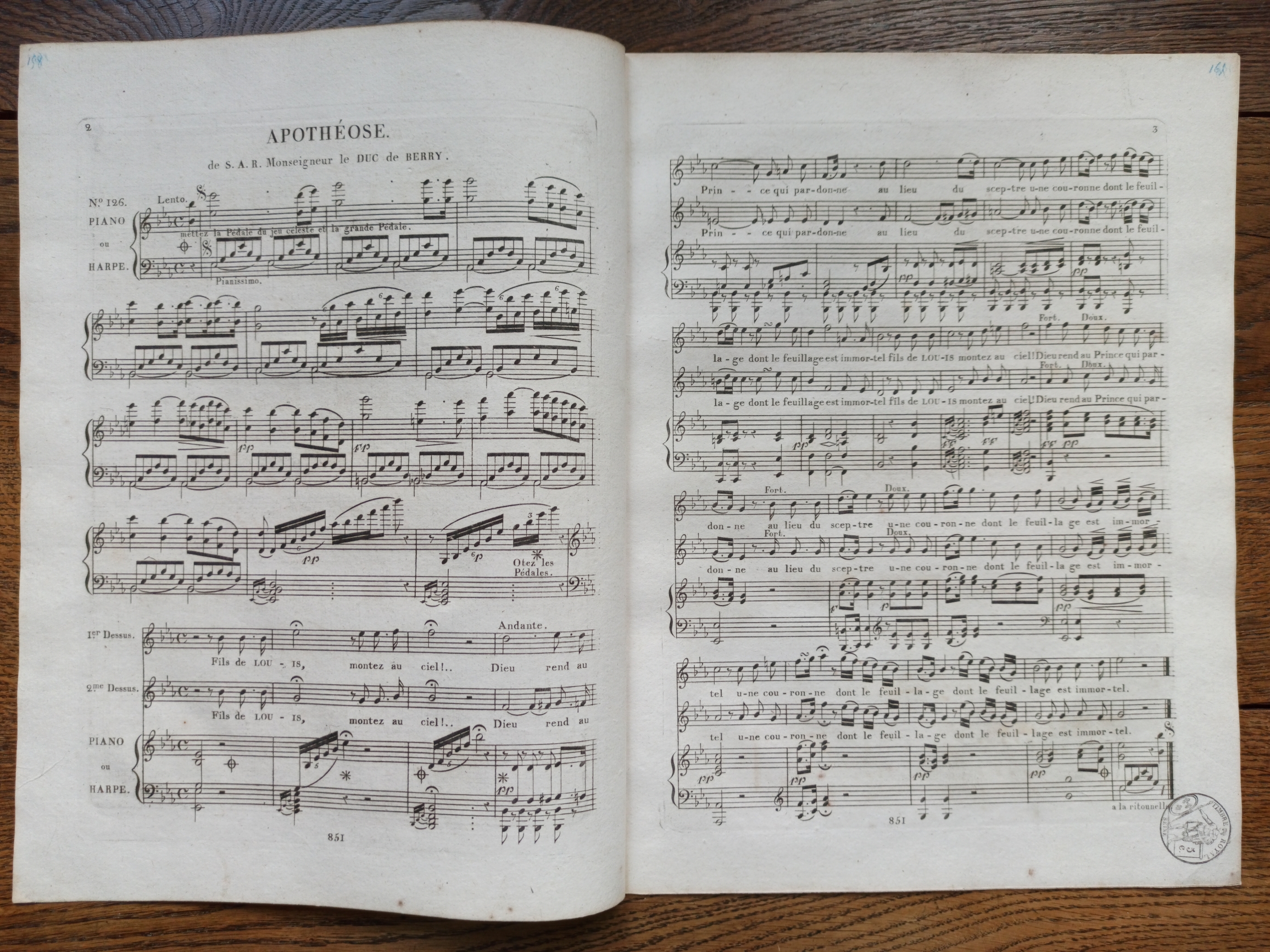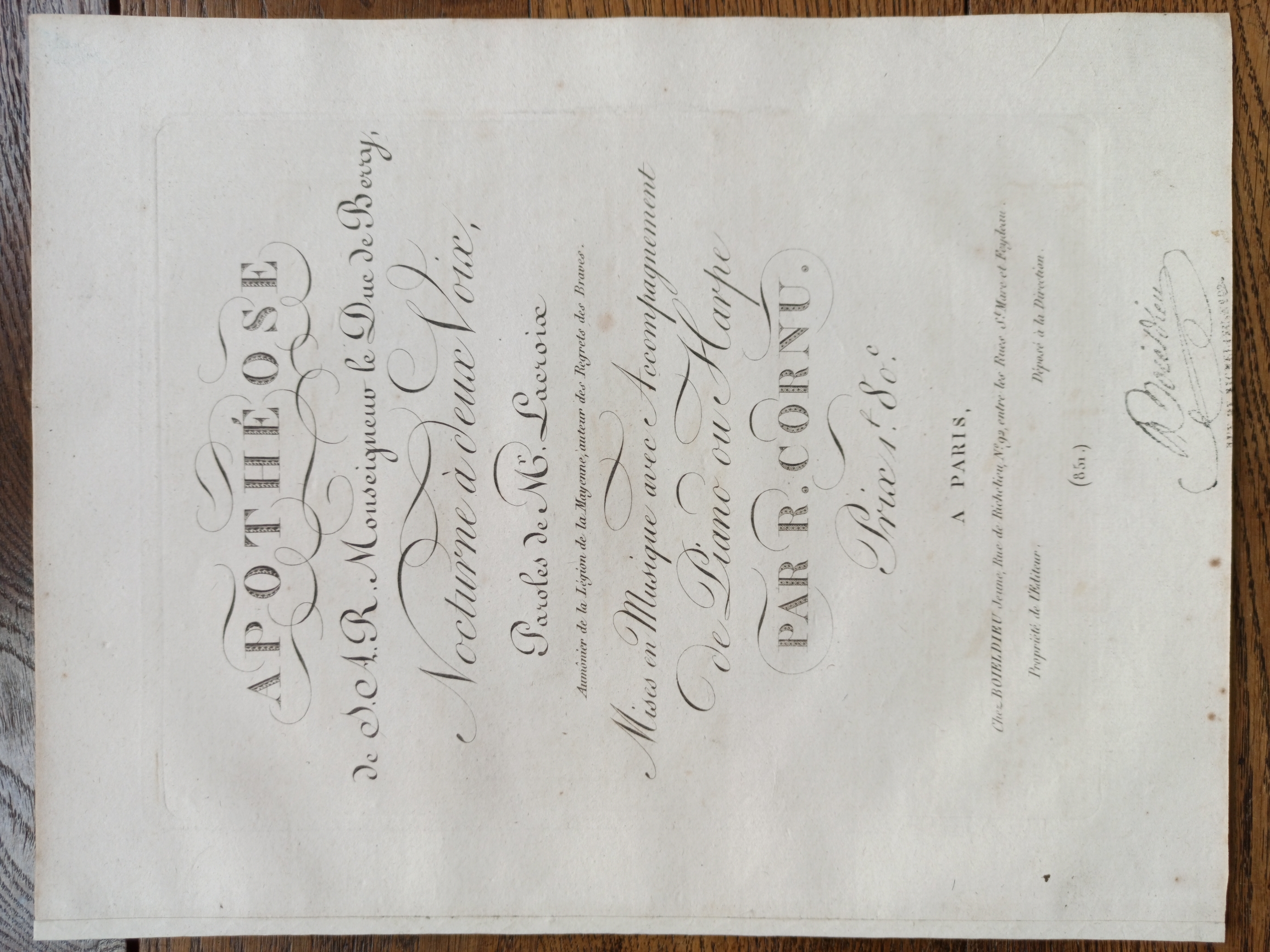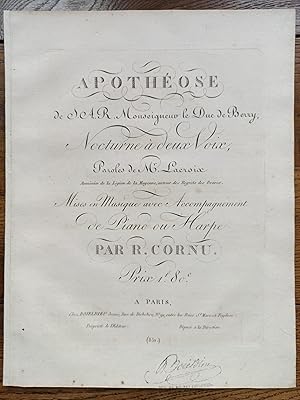 Apothéose de S.A.R. Monseigneur le duc de Berry. Nocturne à deux voix, paroles de Mr Lacroix. mis en musique avec accompagnement de piano ou harpe.