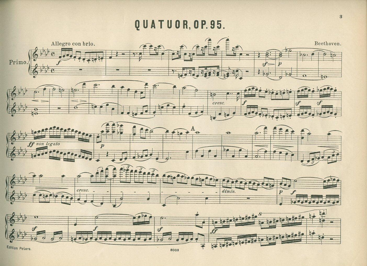 Duos, Trios, Quartette, Quintette, Sextette von Ludwig van Beethoven Quartets: Opus 95 in F minor and Opus 127 in E flat major [Edition Peters Number 8003] for Four Hands