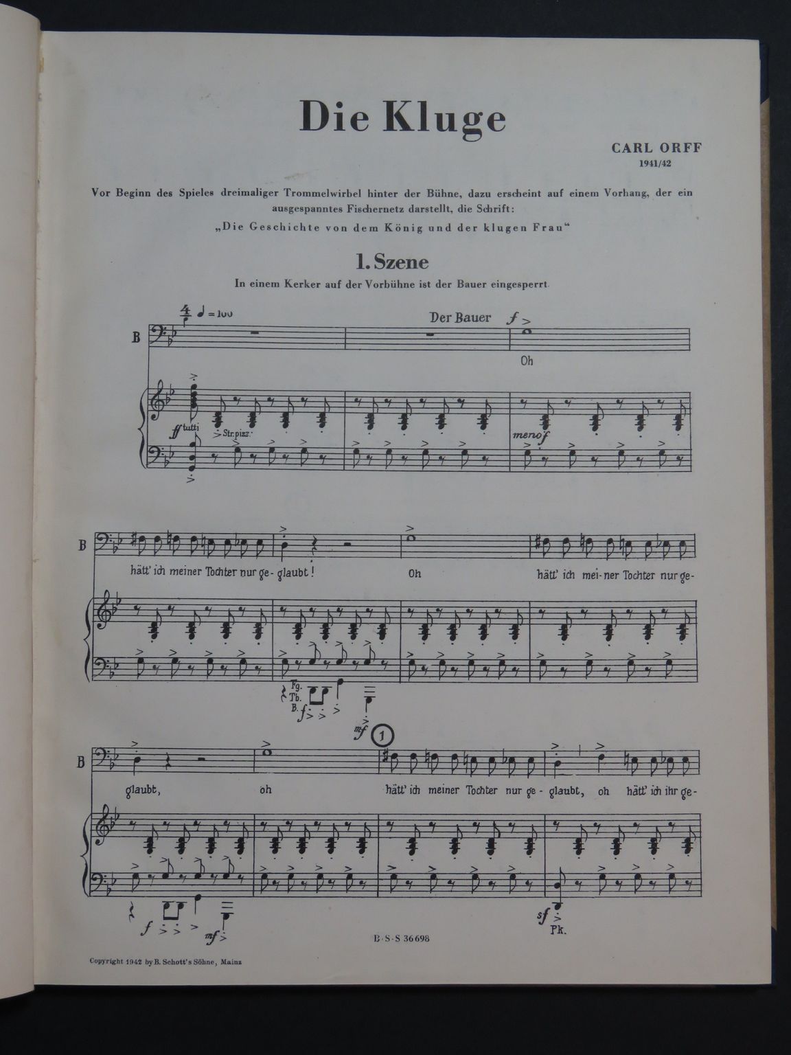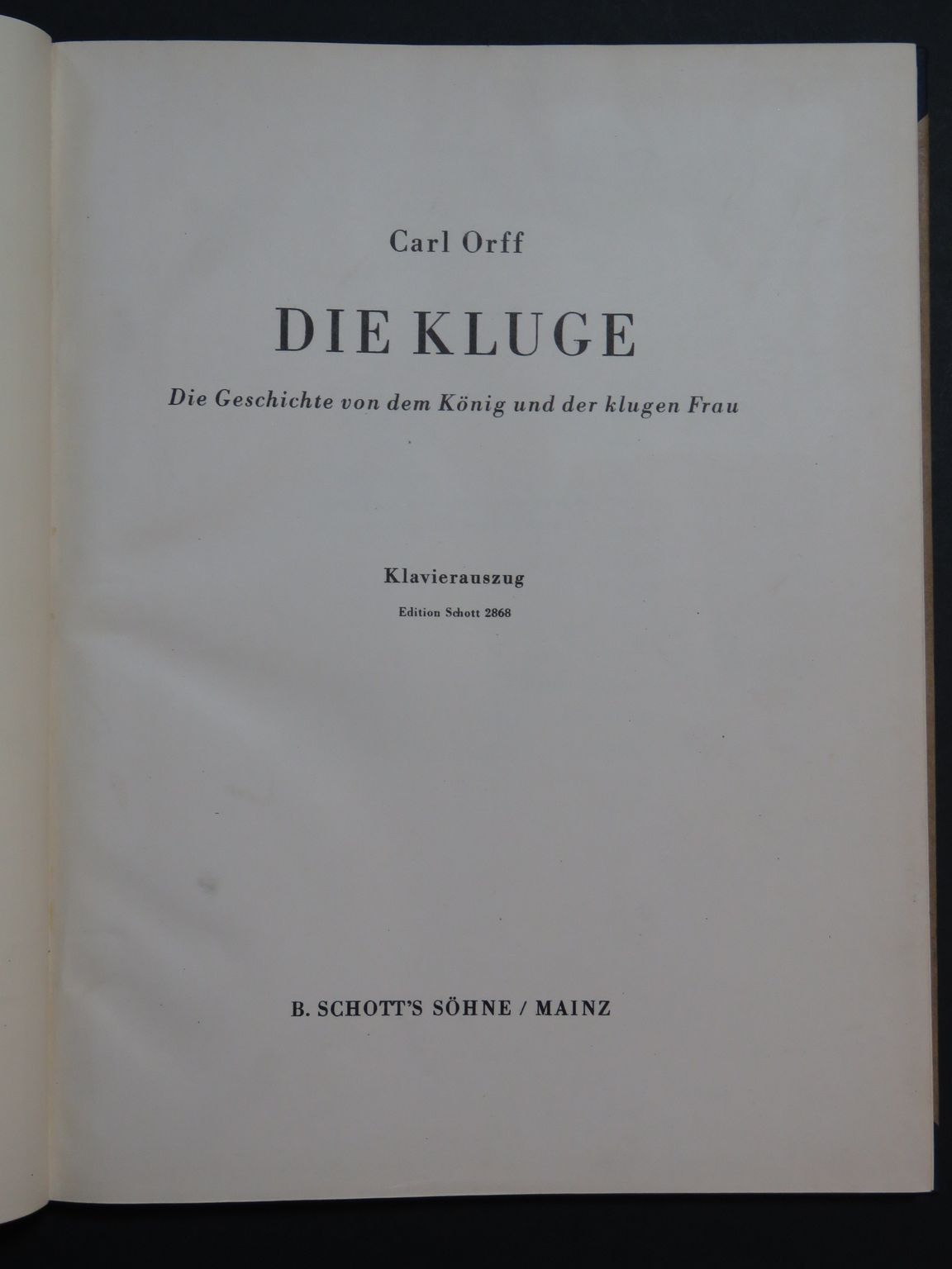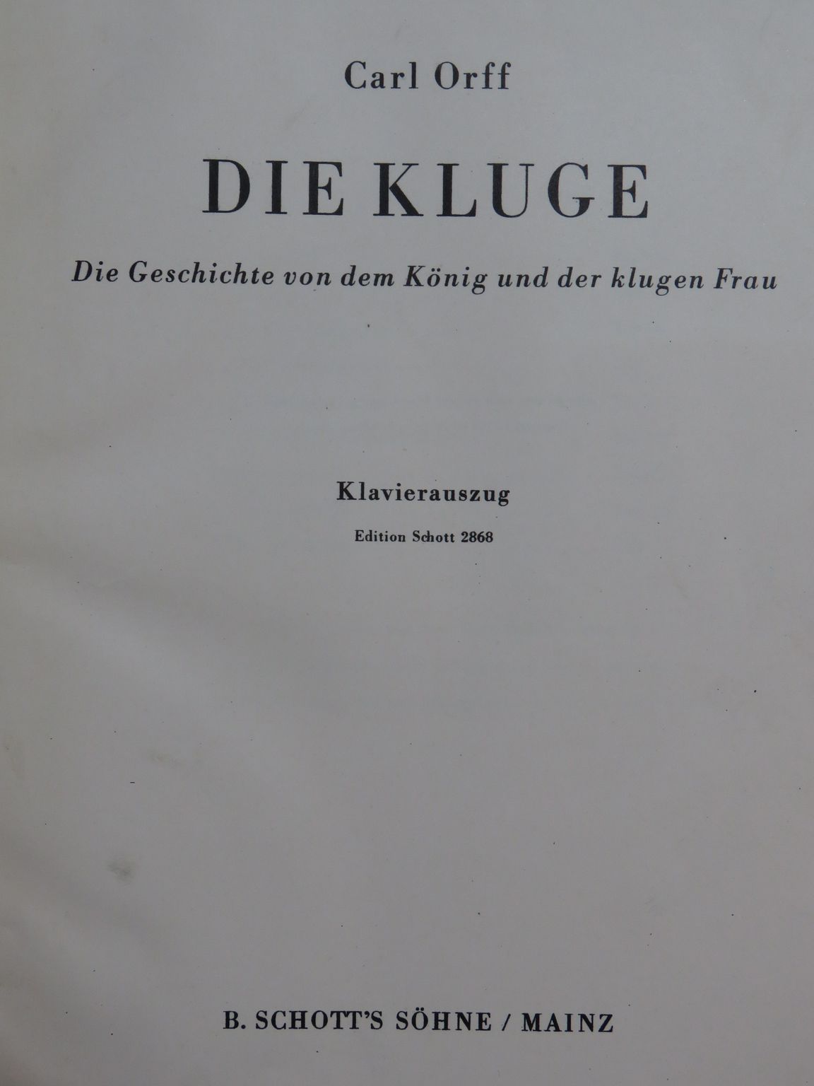 ORFF Carl Die Kluge Opéra Chant Piano 1942