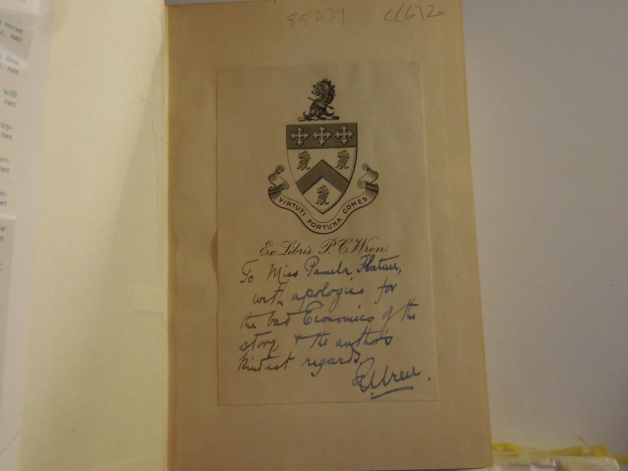 Add to basketSigned with an inscription from Wren on his book plate. "To . with apologies for the bad economics of the story and the author's kindest regards" Percival Wren, square, tight, somewhat faded spine but remaining portion of dust jacket is bright and clear.