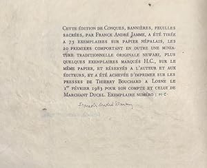 Broché. Condition: Très bon Etat. 36p. tirage à 75 exemplaires sur papier népalais. Celui ci ne faisant pas parti des 20 premier donc sans la miniature. Envoi de l'auteur. Seller Inventory # 10717