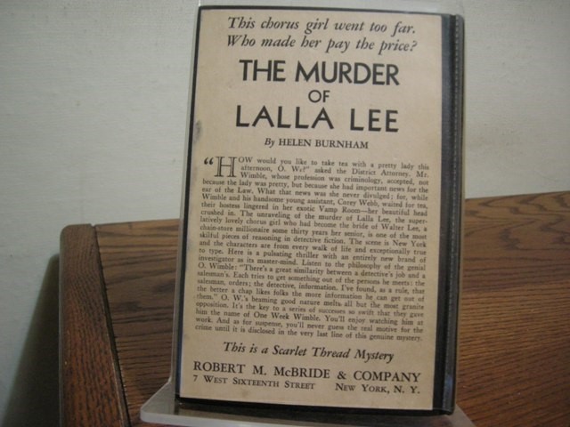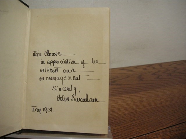 Add to basketSigned by Burnham, "Mrs. Clowes/in appreciation of her interest and encouragement/Sincerely, Helen Burnham/May 1931." Black cloth with paper labels to the boards and spine. Slightly leaning. The page edges have an ink stamped "Scarlet Thread" decoration specific to this imprint series. A bookseller ticket and price sticker from Capwell, Taft and Pennoyer of Oakland to the rear pastedown endpaper. A debut mystery featuring Oberon "One Week" Wimble. ; 274 pages; Signed by Author.