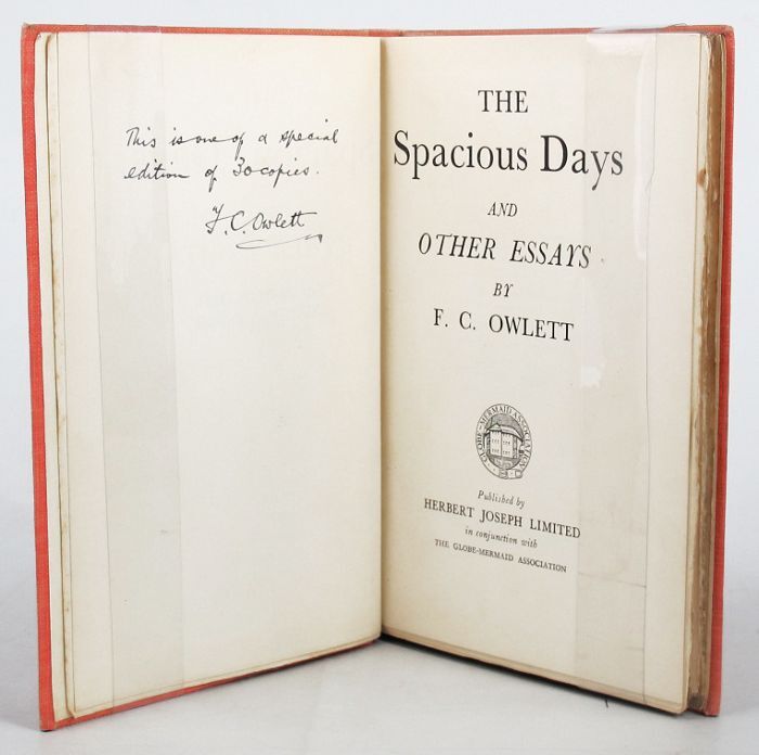 Add to basketPp. 144(last blank), pink cloth over bevelled boards, edges lightly faded; t.e.g., others uncut; endpapers a trifle foxed; Michael Joseph, London, 1937. First edition, being one of 30 special copies, so inscribed and signed by the author. *The other essays are 'The Eulogy of Marlowe', 'Chatterton's Apology', and a paper on Francis Thompson.