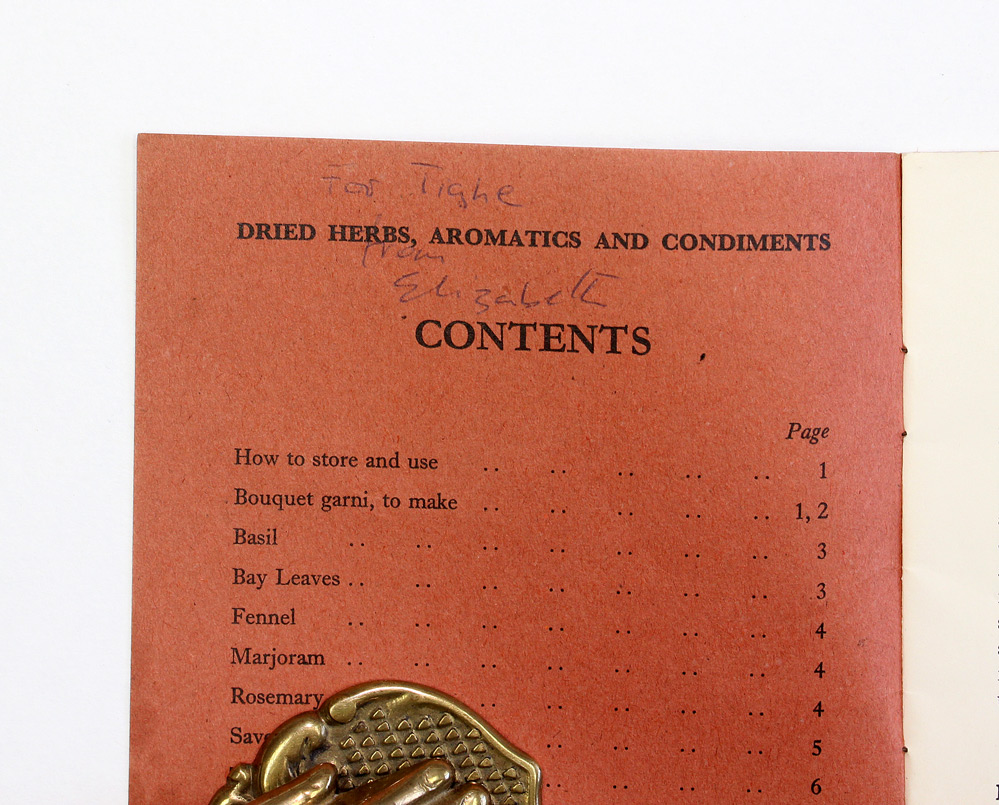 A small collection of Elizabeth David Booklets from the late 1960's. Includes Cooking with Le Creuset x 2 , Elizabeth David Kitchen Utensils 1968-9 and a Signed Dried Herbs, Aromatics and Condiments