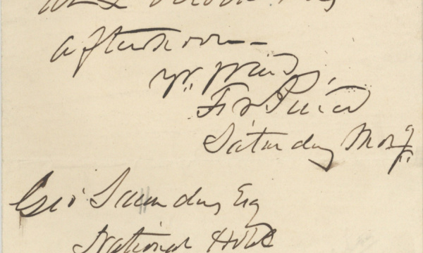 Autograph Letter Signed, Saturday morning, no date, to George Saunders residing at the National Hotel in Washington. ?My dear Sir: Will you call on me with Curry at 2 o?clock this afternoon. Yr. friend, Fr. Pierce. Come to the library, If not at 2 as early as possible after.? That Pierce was in Washington is obvious if Saunders was, too, but whether it was while Pierce was in Congress or as President is not clear.However, these facts make it likely that the letter was as president. Sanders was a supporter of President James K. Polk and was later awarded the position of Consul in London during the administration of Franklin Pierce. George Curry served as the Secretary of the Oregon Territory from 1853 to 1854. President Pierce then named him governor of the territory. Perhaps this meeting was as president, and called to offer the men those positions.